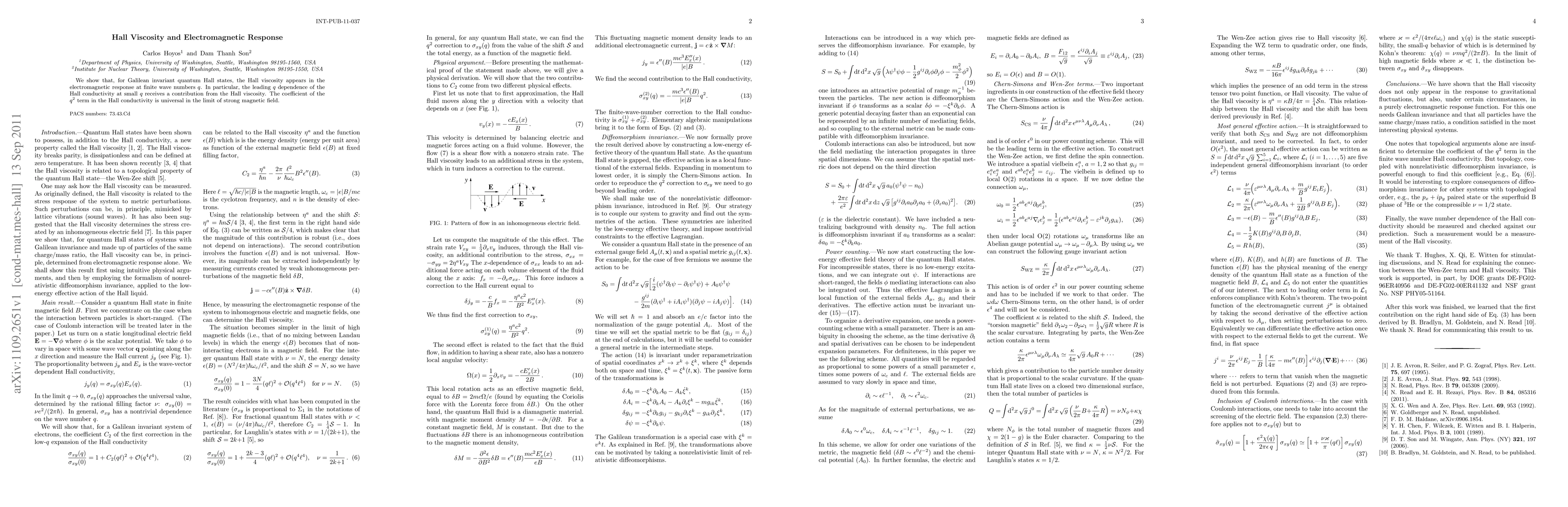 Summary: This paper demonstrates that Hall viscosity influences the electromagnetic response in Galilean invariant quantum Hall states, particularly affecting the Hall conductivity's leading q-dependence at small wave numbers, with a universal q^2 coefficient in strong magnetic field conditions.