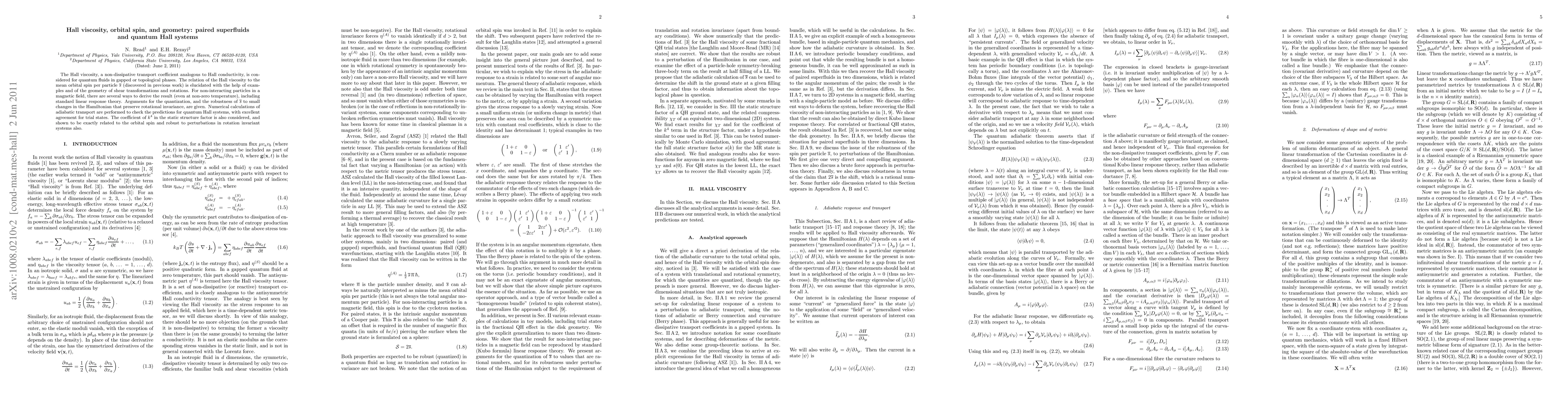 The paper explores Hall viscosity in quantum fluids, demonstrating its quantization and robustness, and links it to mean orbital spin per particle. Numerical calculations confirm theoretical predictions for quantum Hall systems.