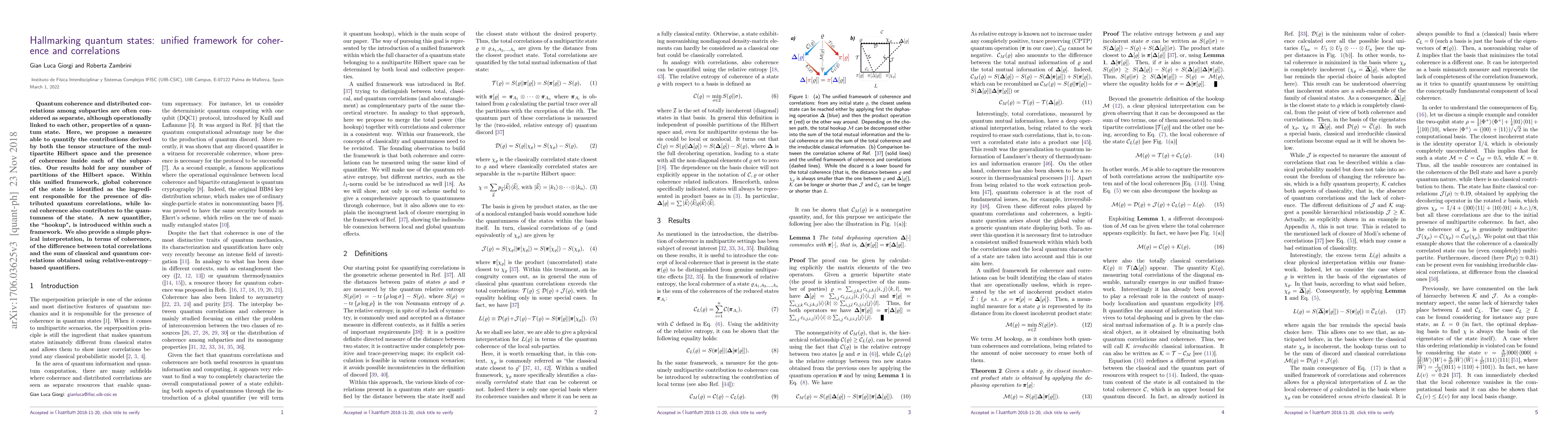 Quantum coherence and distributed correlations among subparties are often considered as separate, although operationally linked to each other, properties of a quantum state. Here, we propose a measure able to quantify the contributions derived by both the tensor structure of the multipartite Hilbert space and the presence of coherence inside each of the subparties. Our results hold for any number of partitions of the Hilbert space. Within this unified framework, global coherence of the state is identified as the ingredient responsible for the presence of distributed quantum correlations, while local coherence also contributes to the quantumness of the state. A new quantifier, the "hookup", is introduced within such a framework. We also provide a simple physical interpretation, in terms of coherence, of the difference between total correlations and the sum of classical and quantum correlations obtained using relative-entropy--based quantifiers.