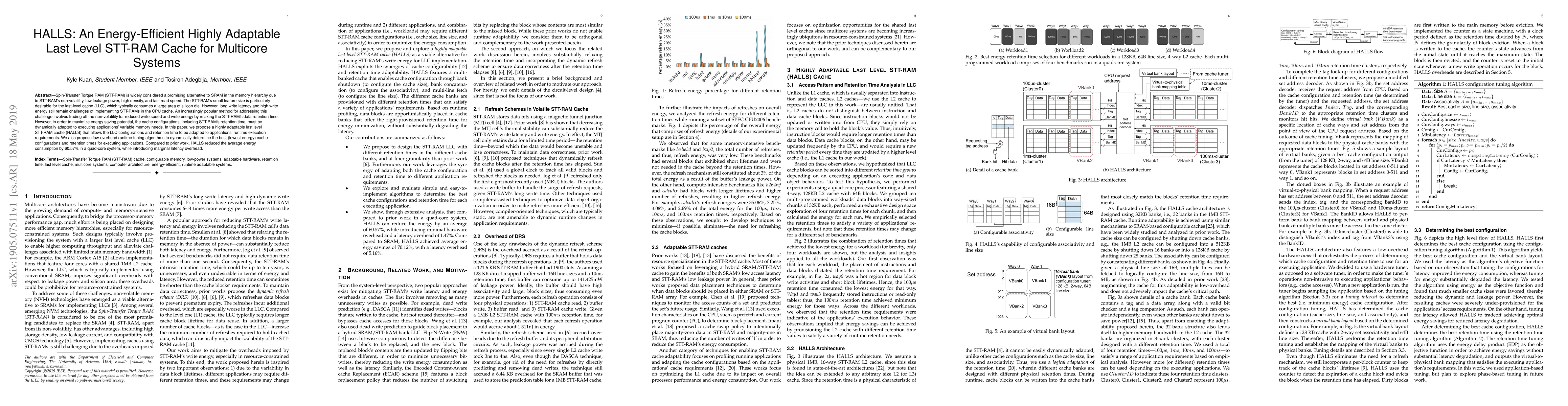 This paper proposes HALLS, an energy-efficient, adaptable last-level cache using STT-RAM, designed to dynamically adjust cache configurations and retention times to meet the variable memory needs of multicore applications, achieving a 60.57% reduction in average energy consumption with minimal latency overhead.