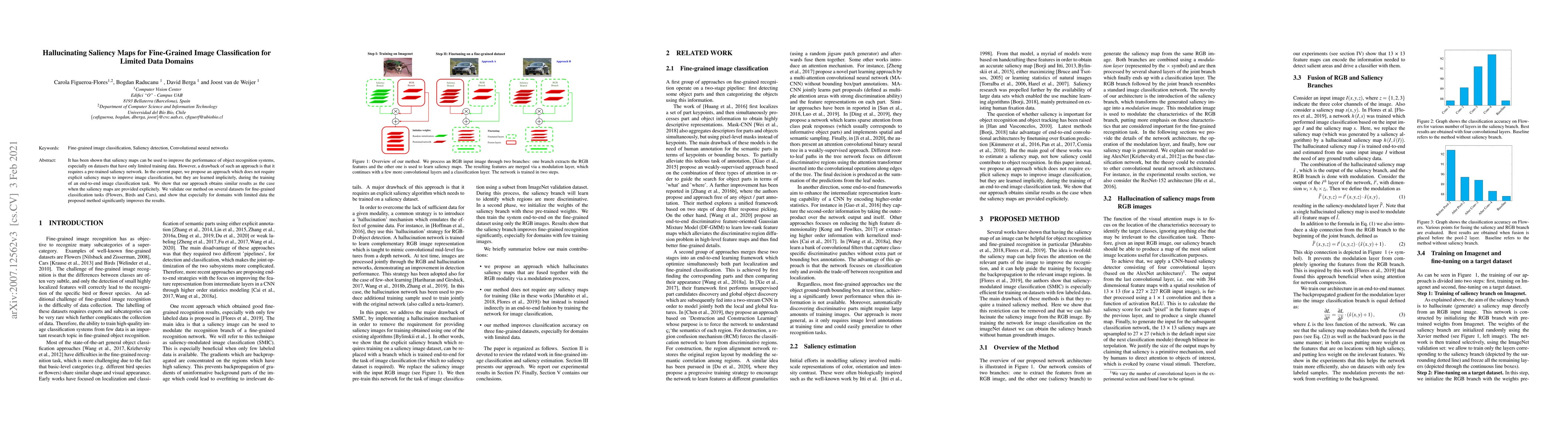 This paper proposes an end-to-end approach to fine-grained image classification that implicitly learns saliency maps during training, achieving results comparable to methods using explicit saliency maps, especially beneficial when training data is limited. The method also performs competitively on real image saliency benchmarks.