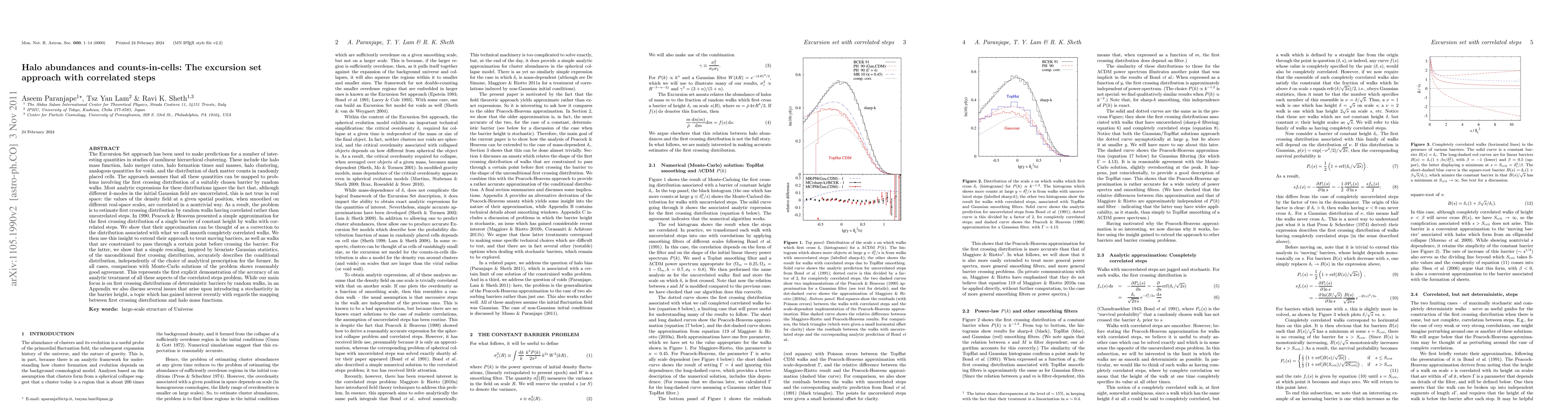 This paper extends the Excursion Set approach to account for correlated steps in random walks, improving predictions for halo abundances and counts-in-cells in nonlinear hierarchical clustering. It corrects previous approximations by incorporating correlated real-space density field values and demonstrates good agreement with Monte-Carlo simulations.