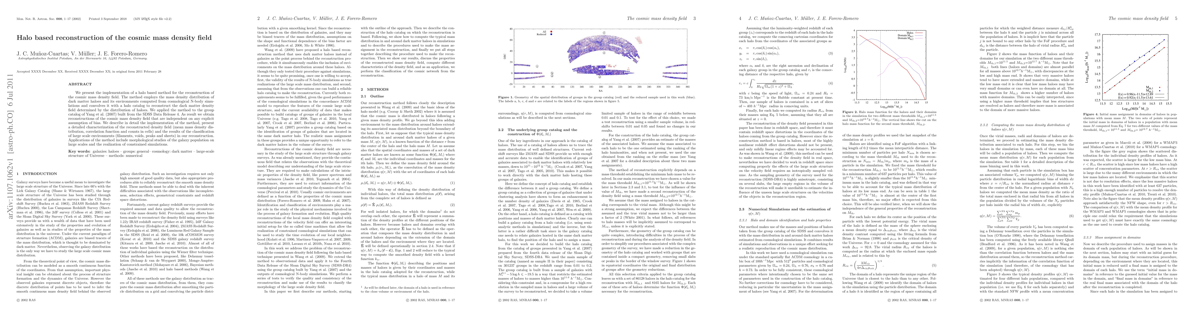 This paper introduces a halo-based method for reconstructing the cosmic mass density field using dark matter haloes from N-body simulations, achieving bias-independent results. The method's application to the SDSS Data Release 4 group catalog enables detailed characterization of the reconstructed density field and classification of large-scale environments.