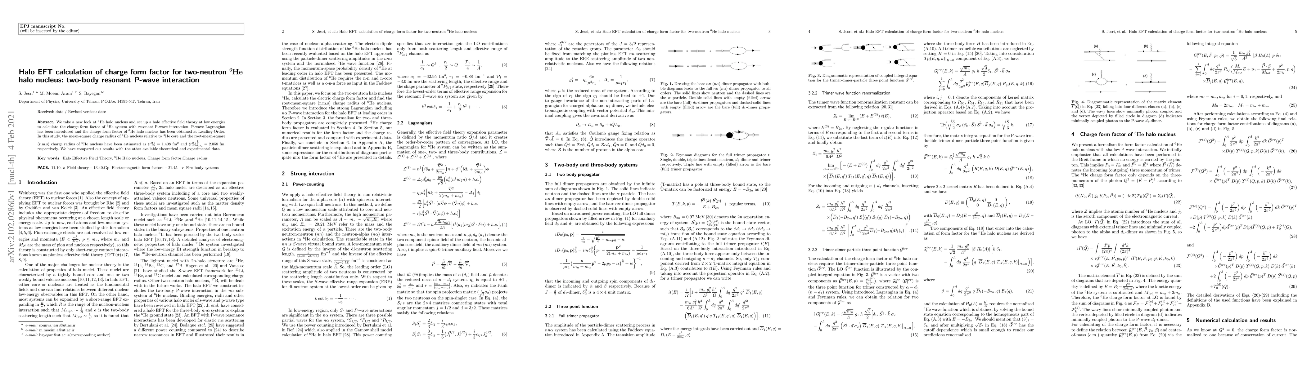 This study employs halo effective field theory to calculate the charge form factor for the two-neutron halo nucleus ${}^{6}\textrm{He}$, incorporating a P-wave Lagrangian for resonant interactions. The mean-square charge radius relative to the ${}^{4}\textrm{He}$ core and the r.m.s charge radius of ${}^{6}\textrm{He}$ are estimated as 1.408 fm² and 2.058 fm, respectively.