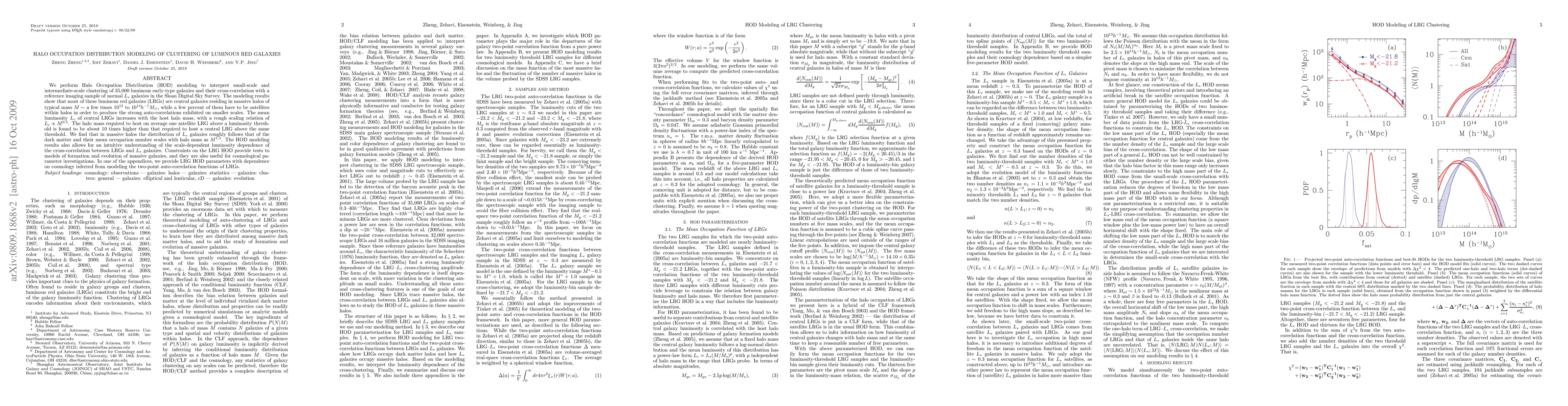 This paper uses Halo Occupation Distribution (HOD) modeling to analyze the clustering of 35,000 luminous red galaxies, finding that most are central galaxies in massive halos, while a few percent are satellites. The model reveals a scaling relation between central galaxy luminosity and host halo mass.