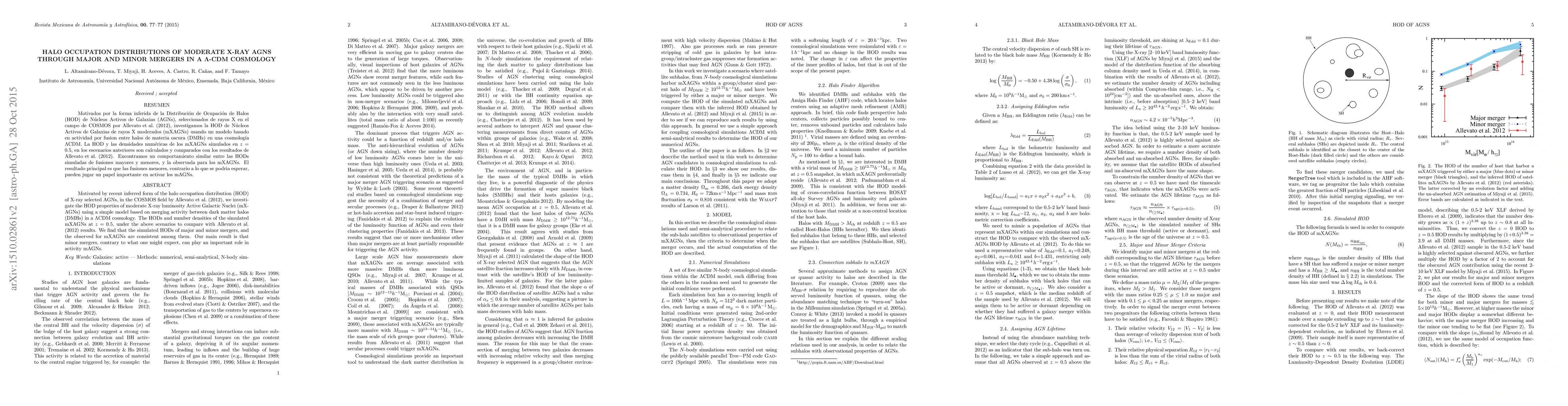 Motivated by recent inferred form of the halo occupation distribution (HOD) of X-ray selected AGNs, in the COSMOS field by Allevato et al. (2012), we investigate the HOD properties of moderate X-ray luminosity Active Galactic Nuclei (mXAGNs) using a simple model based on merging activity between dark matter halos (DMHs) in a $\Lambda$-CDM cosmology. The HODs and number densities of the simulated mXAGNs at $z=0.5$, under the above scenarios to compare with Allevato et al. (2012) results. We find that the simulated HODs of major and minor mergers, and the observed for mXAGNs are consistent among them. Our main result is that minor mergers, contrary to what one might expect, can play an important role in activity mAGNs.