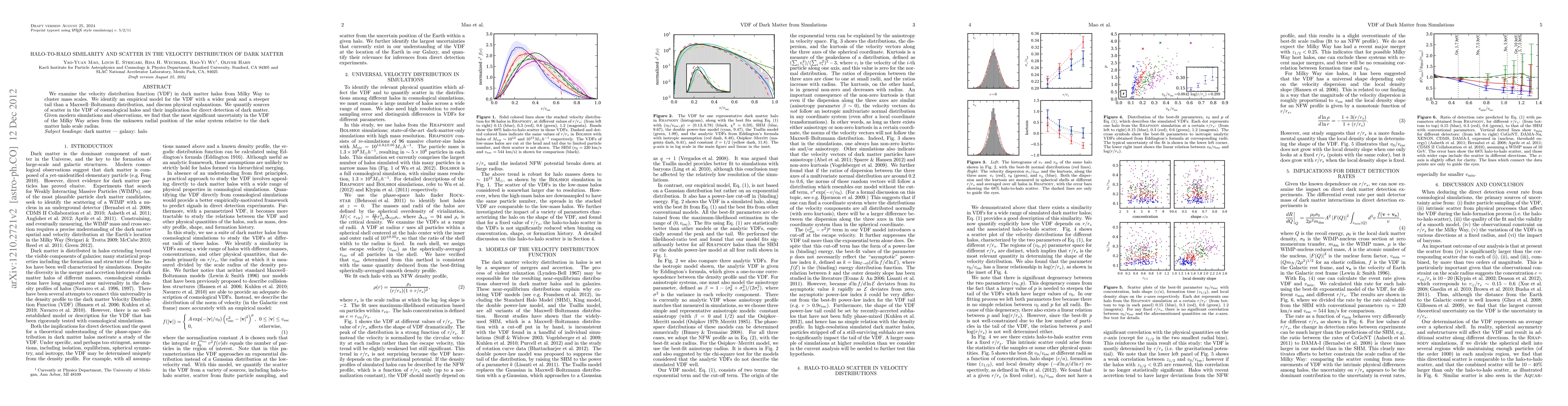 Researchers found that dark matter halos have a velocity distribution with a wider peak and steeper tail than expected, leading to uncertainty in detecting dark matter directly.