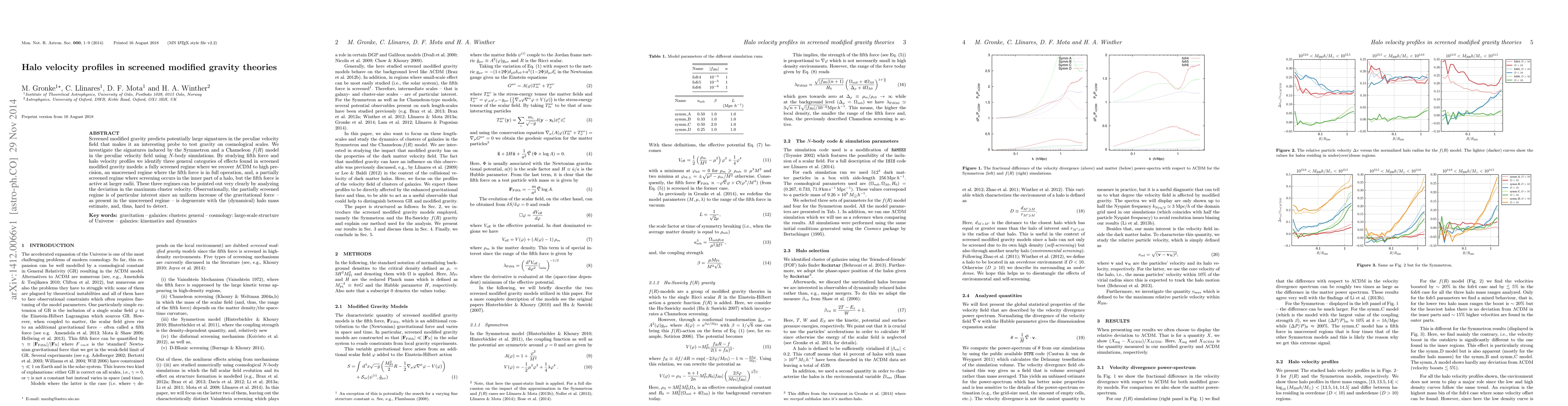 Screened modified gravity predicts potentially large signatures in the peculiar velocity field that makes it an interesting probe to test gravity on cosmological scales. We investigate the signatures induced by the Symmetron and a Chameleon $f(R)$ model in the peculiar velocity field using $N$-body simulations. By studying fifth force and halo velocity profiles we identify three general categories of effects found in screened modified gravity models: a fully screened regime where we recover $\Lambda$CDM to high precision, an unscreened regime where the fifth force is in full operation, and, a partially screened regime where screening occurs in the inner part of a halo, but the fifth force is active at larger radii. These three regimes can be pointed out very clearly by analyzing the deviation in the maximum cluster velocity. Observationally, the partially screened regime is of particular interest since an uniform increase of the gravitational force - as present in the unscreened regime - is degenerate with the (dynamical) halo mass estimate, and, thus, hard to detect.
