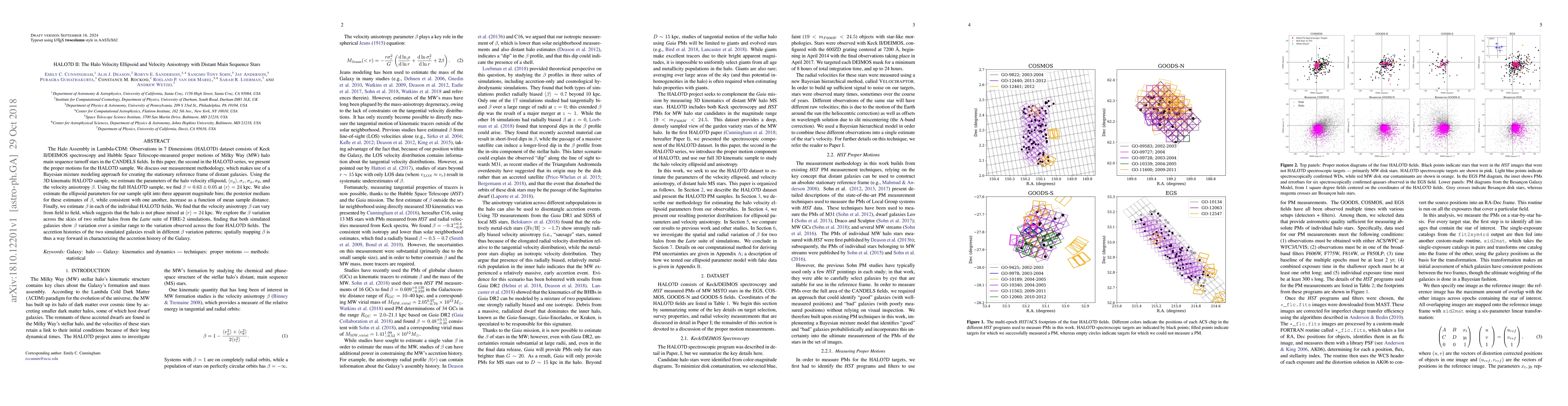 The Halo Assembly in Lambda-CDM: Observations in 7 Dimensions (HALO7D) dataset consists of Keck II/DEIMOS spectroscopy and Hubble Space Telescope-measured proper motions of Milky Way (MW) halo main sequence turnoff stars in the CANDELS fields. In this paper, the second in the HALO7D series, we present the proper motions for the HALO7D sample. We discuss our measurement methodology, which makes use of a Bayesian mixture modeling approach for creating the stationary reference frame of distant galaxies. Using the 3D kinematic HALO7D sample, we estimate the parameters of the halo velocity ellipsoid, $\langle v_{\phi} \rangle, \sigma_r, \sigma_{\phi}, \sigma_{\theta}$, and the velocity anisotropy $\beta$. Using the full HALO7D sample, we find $\beta=0.63 \pm 0.05$ at $\langle r \rangle =24$ kpc. We also estimate the ellipsoid parameters for our sample split into three apparent magnitude bins; the posterior medians for these estimates of $\beta$, while consistent with one another, increase as a function of mean sample distance. Finally, we estimate $\beta$ in each of the individual HALO7D fields. We find that the velocity anisotropy $\beta$ can vary from field to field, which suggests that the halo is not phase mixed at $\langle r \rangle =24$ kpc. We explore the $\beta$ variation across the skies of two stellar halos from the \textit{Latte} suite of FIRE-2 simulations, finding that both simulated galaxies show $\beta$ variation over a similar range to the variation observed across the four HALO7D fields. The accretion histories of the two simulated galaxies result in different $\beta$ variation patterns; spatially mapping $\beta$ is thus a way forward in characterizing the accretion history of the Galaxy.