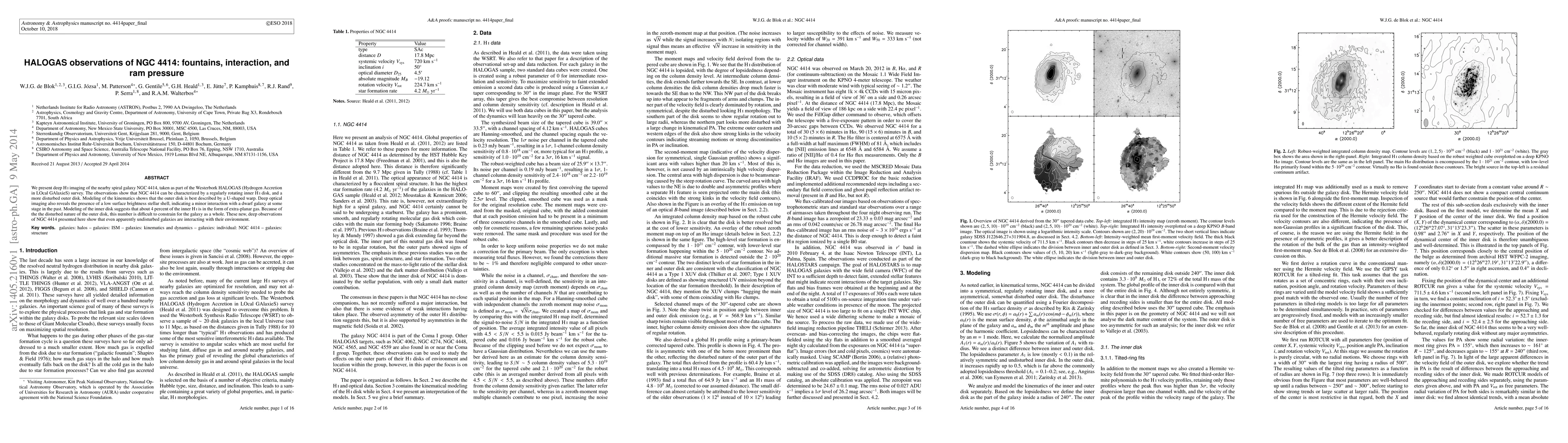 We present deep HI imaging of the nearby spiral galaxy NGC 4414, taken as part of the Westerbork HALOGAS (Hydrogen Accretion in LOcal GAlaxieS) survey. The observations show that NGC 4414 can be characterized by a regularly rotating inner HI disk, and a more disturbed outer disk. Modeling of the kinematics shows that the outer disk is best described by a U-shaped warp. Deep optical imaging also reveals the presence of a low surface brightness stellar shell, indicating a minor interaction with a dwarf galaxy at some stage in the past. Modeling of the inner disk suggests that about 4 percent of the inner HI is in the form of extra-planar gas. Because of the the disturbed nature of the outer disk, this number is difficult to constrain for the galaxy as a whole. These new, deep observations of NGC 4414 presented here show that even apparently undisturbed galaxies are interacting with their environment.