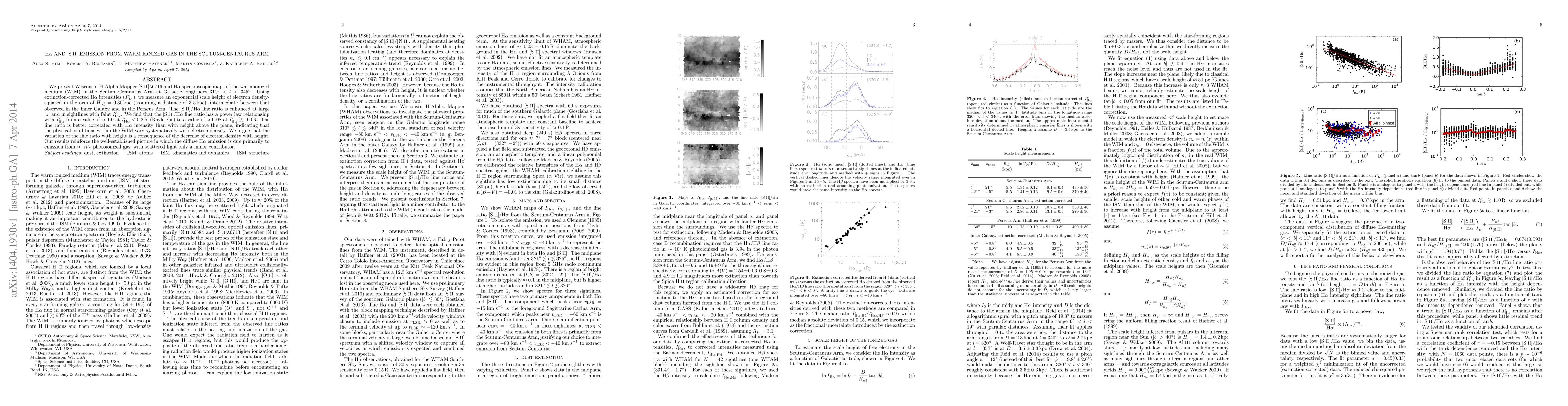 This paper presents spectroscopic maps of the warm ionized medium in the Scutum-Centaurus Arm, revealing an intermediate scale height for electron density-squared. The [S II]/Hα line ratio correlates with Hα intensity, suggesting that physical conditions in the warm ionized medium vary systematically with electron density.