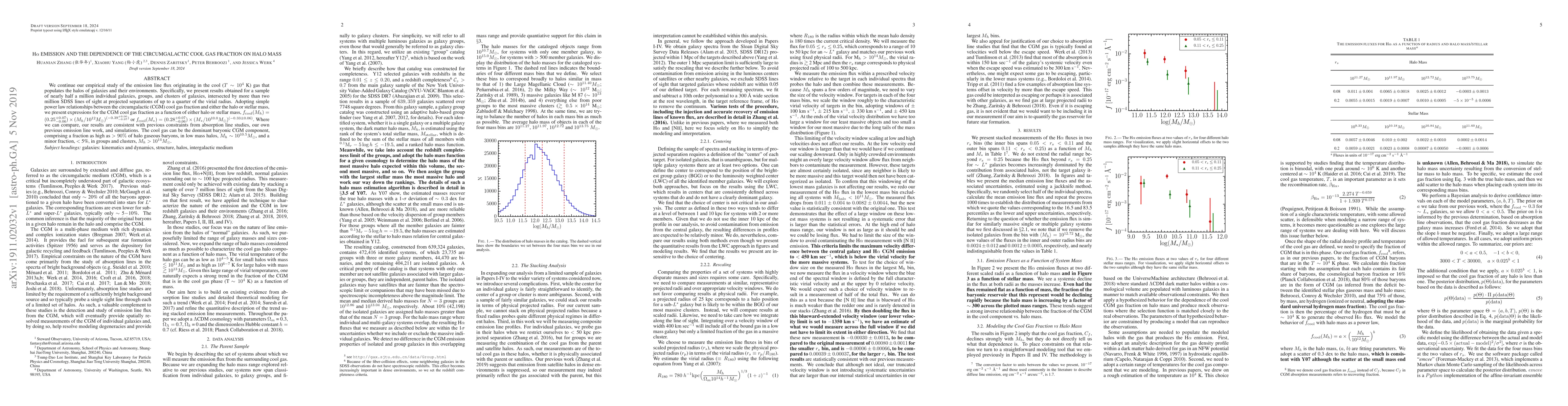 This study investigates the H$\alpha$ emission from cool gas in the circumgalactic medium (CGM) and finds a relationship between the CGM cool gas fraction and galaxy halo or stellar mass. The results suggest that the cool gas fraction is significant in low-mass halos but diminishes in more massive halos.