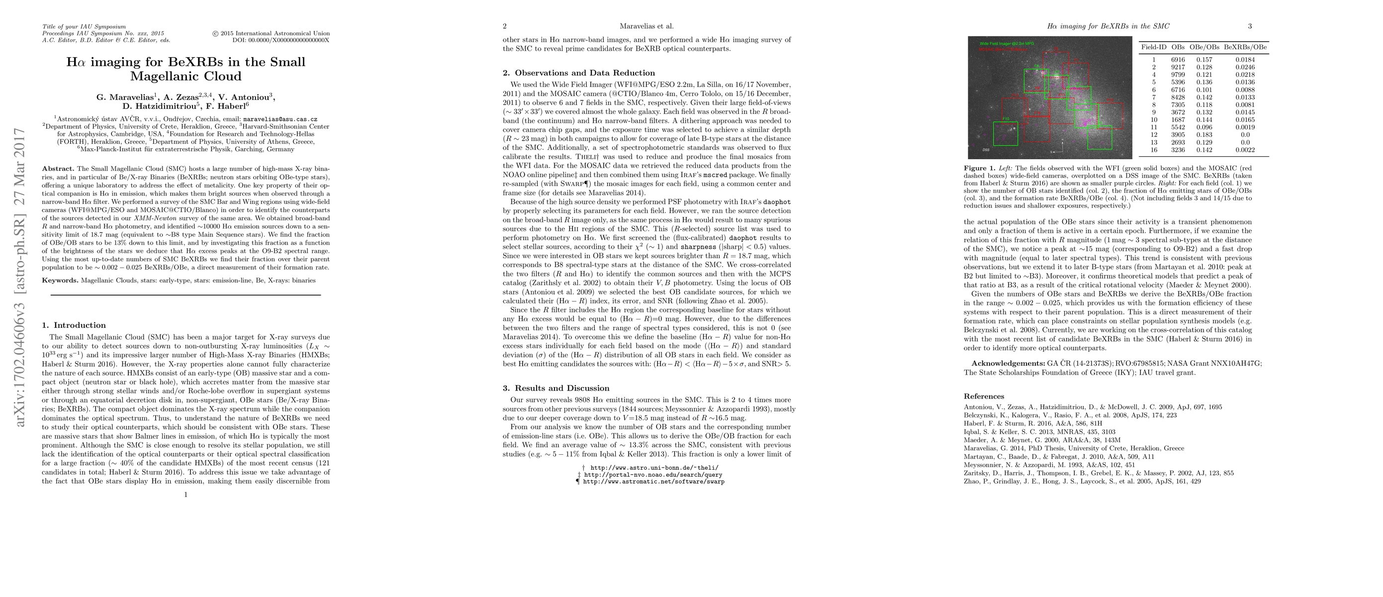 This study conducted a survey of the Small Magellanic Cloud (SMC) to identify Hα emission sources, revealing ~10,000 such sources and determining that 13% are OBe/OB stars. The research found that Hα excess peaks in the O9-B2 spectral range, and estimated the formation rate of BeX-ray binaries (BeXRBs) to be ~0.002-0.025 BeXRBs per OBe star.