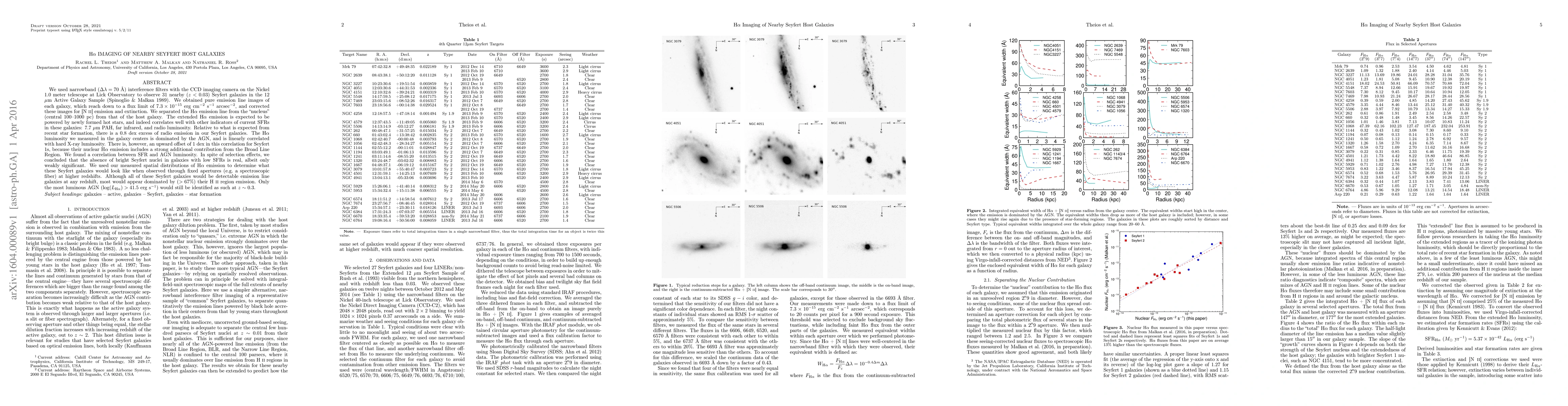 We used narrowband interference filters with the CCD imaging camera on the Nickel 1.0 meter telescope at Lick Observatory to observe 31 nearby (z < 0.03) Seyfert galaxies in the 12 {\mu}m Active Galaxy Sample. We obtained pure emission line images of each galaxy in order to separate H{\alpha} emission from the nucleus from that of the host galaxy. The extended H{\alpha} emission is expected to be powered by newly formed hot stars, and correlates well with other indicators of current star formation in these galaxies: 7.7 {\mu}m PAH, far-infrared, and radio luminosity. Relative to what would be expected from recent star formation, there is a 0.8 dex excess of radio emission in our Seyfert galaxies. The nuclear H{\alpha} luminosity is dominated by the AGN, and is correlated with the hard X-ray luminosity. There is an upward offset of 1 dex in this correlation for the Seyfert 1s due to a strong contribution from the Broad Line Region. We found a correlation between star formation rate and AGN luminosity. In spite of selection effects, we concluded that the absence of bright Seyfert nuclei in galaxies with low SFRs is real, albeit only weakly significant. We used our measured spatial distributions of H{\alpha} emission to determine what these Seyfert galaxies would look like when observed through fixed apertures at high redshifts. Although all would be detectable emission line galaxies at any redshift, most would appear dominated by HII region emission. Only the most luminous AGN would still be identified at z~0.3.