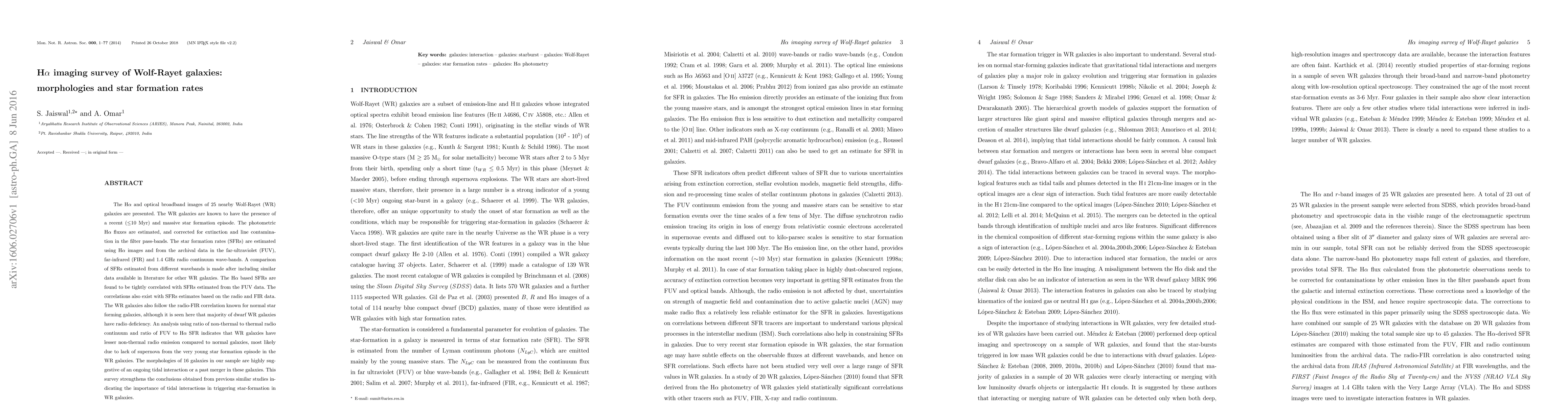 This study presents Halpha and optical images of 25 nearby Wolf-Rayet galaxies, estimating star formation rates (SFRs) and finding tight correlations between them across different wavebands. The morphologies suggest ongoing tidal interactions or past mergers, reinforcing the role of such events in triggering star formation in WR galaxies.