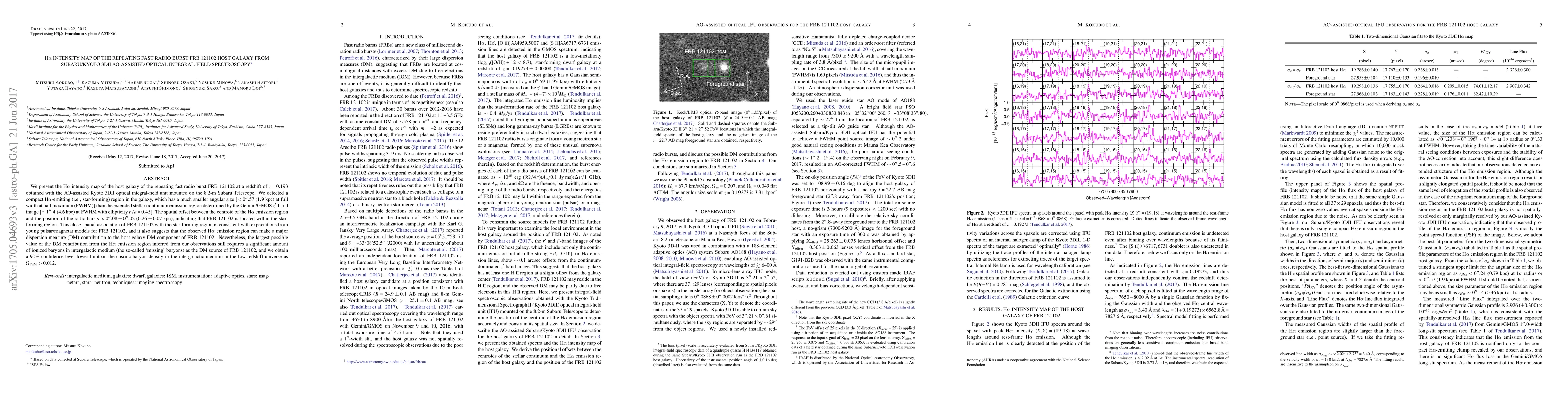 We present the H$\alpha$ intensity map of the host galaxy of the repeating fast radio burst FRB 121102 at a redshift of z=0.193 obtained with the AO-assisted Kyoto 3DII optical integral-field unit mounted on the 8.2-m Subaru Telescope. We detected a compact H$\alpha$-emitting (i.e., star-forming) region in the galaxy, which has a much smaller angular size [$< 0".57$ (1.9 kpc) at full width at half maximum (FWHM)] than the extended stellar continuum emission region determined by the Gemini/GMOS z'-band image [$\simeq 1".4$ (4.6 kpc) at FWHM with ellipticity b/a=0.45]. The spatial offset between the centroid of the H$\alpha$ emission region and the position of the radio bursts is $0".08 \pm 0".02$ ($0.26 \pm 0.07$ kpc), indicating that FRB 121102 is located within the star-forming region. This close spatial association of FRB 121102 with the star-forming region is consistent with expectations from young pulsar/magnetar models for FRB 121102, and it also suggests that the observed H$\alpha$ emission region can make a major dispersion measure (DM) contribution to the host galaxy DM component of FRB 121102. Nevertheless, the largest possible value of the DM contribution from the H$\alpha$ emission region inferred from our observations still requires a significant amount of ionized baryons in intergalactic medium (the so-called `missing' baryons) as the DM source of FRB 121102, and we obtain a 90\% confidence level lower limit on the cosmic baryon density in the intergalactic medium in the low-redshift universe as $\Omega_{IGM} > 0.012$.