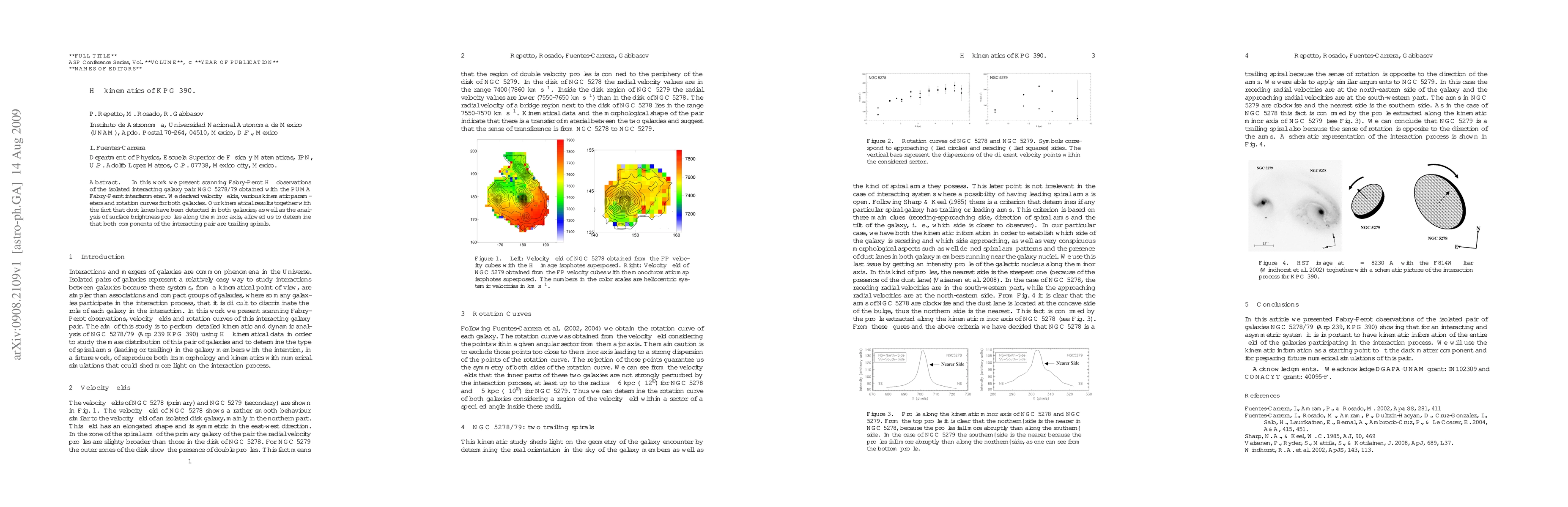 In this work we present scanning Fabry-Perot H$\alpha$ observations of the isolated interacting galaxy pair NGC 5278/79 obtained with the PUMA Fabry-Perot interferometer. We derived velocity fields, various kinematic parameters and rotation curves for both galaxies. Our kinematical results together with the fact that dust lanes have been detected in both galaxies, as well as the analysis of surface brightness profiles along the minor axis, allowed us to determine that both components of the interacting pair are trailing spirals.