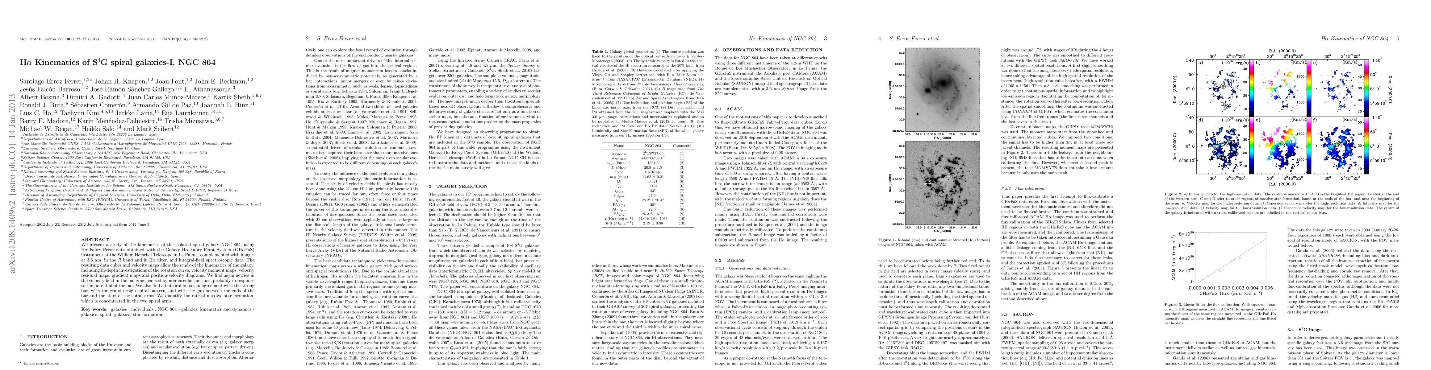 We present a study of the kinematics of the isolated spiral galaxy NGC 864, using H{\alpha} Fabry-Perot data obtained with the GH{\alpha}FaS instrument at the William Herschel Telescope in La Palma, complemented with images at 3.6 {\mu}m, in the R band and in H{\alpha} filter, and integral field spectroscopic data. The resulting data cubes and velocity maps allow the study of the kinematics of the galaxy, including in-depth investigations of the rotation curve, velocity moment maps, velocity residual maps, gradient maps and position-velocity diagrams. We find asymmetries in the velocity field in the bar zone, caused by non-circular motions, probably in response to the potential of the bar. We also find a flat-profile bar, in agreement with the strong bar, with the grand design spiral pattern, and with the gap between the ends of the bar and the start of the spiral arms. We quantify the rate of massive star formation, which is concentrated in the two spiral arms.