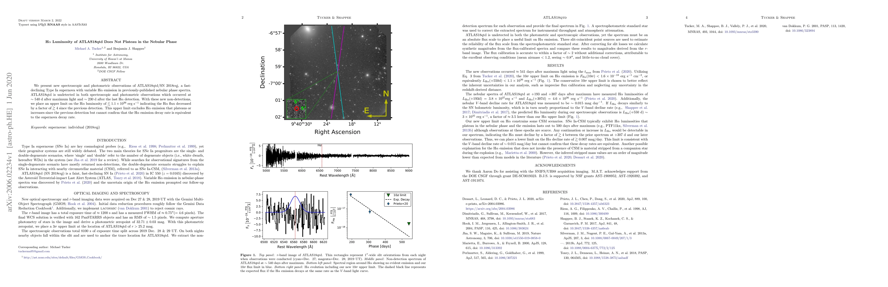 We present new spectroscopic and photometric observations of ATLAS18qtd/SN 2018cqj, a fast-declining Type Ia supernova with variable H$\alpha$ emission in previously-published nebular phase spectra. ATLAS18qtd is undetected in both spectroscopic and photometric observations which occurred at $\sim 540~\rm d$ after maximum light and $\sim 230~\rm d$ after the last H$\alpha$ detection. With these new non-detections, we place an upper limit on the H$\alpha$ luminosity of $\lesssim 1.1\times 10^{36}~\rm{erg}~\rm s^{-1}$ indicating the H$\alpha$ flux decreased by a factor of $\gtrsim 4$ since the previous detection. This upper limit excludes H$\alpha$ emission that plateaus or increases since the previous detection but cannot confirm that the H$\alpha$ emission decay rate is equivalent to the supernova decay rate.