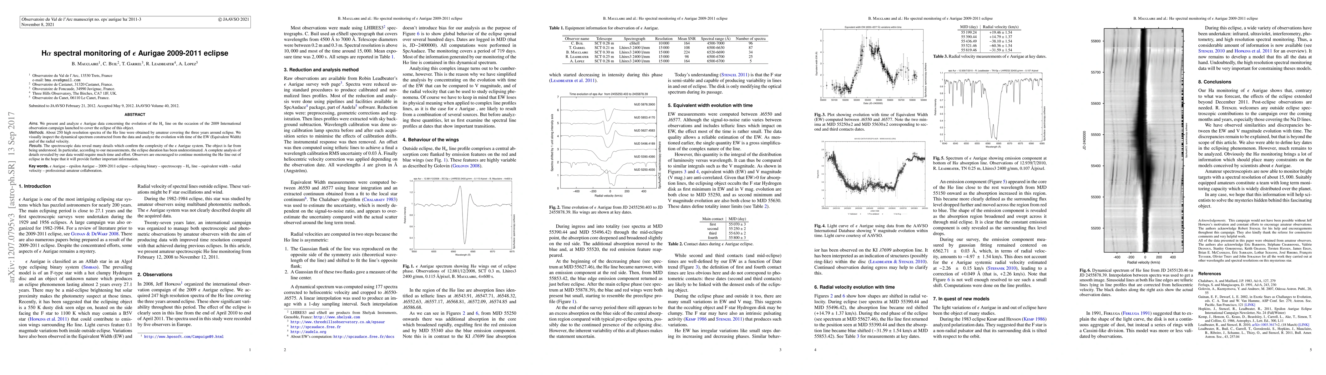 We present and analyze epsilon Aurigae data concerning the evolution of the H$\alpha$ line on the occasion of the 2009 International observation campaign launched to cover the eclipse of this object. About 250 high resolution spectra of the H$\alpha$ line were obtained by amateur covering the three years around eclipse. We visually inspect the dynamical spectrum constructed from the data and analyze the evolution with time of the radial velocity and of EW (Equivalent Width) vs V mag. The spectroscopic data reveal many details which confirm the complexity of the Aurigae system. The object is far from being understood. In particular, according to our measurements, the eclipse duration has been underestimated and key dates were defined. A complete analysis of details revealed by our data would require much time and effort. Observers are encouraged to continue monitoring the H$\alpha$ line out of eclipse in the hope that it will provide further important information.