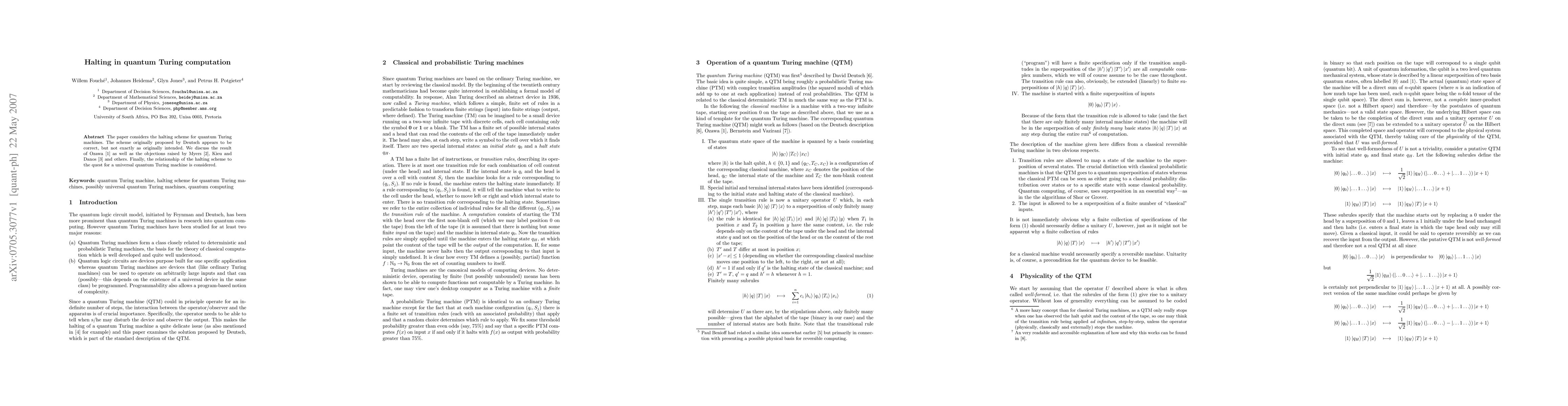 This paper examines the halting problem for quantum Turing machines, confirming the validity of Deutsch's scheme while addressing Ozawa's results and objections from Myers, Kieu, and Danos. It also explores the connection between the halting scheme and the development of a universal quantum Turing machine.