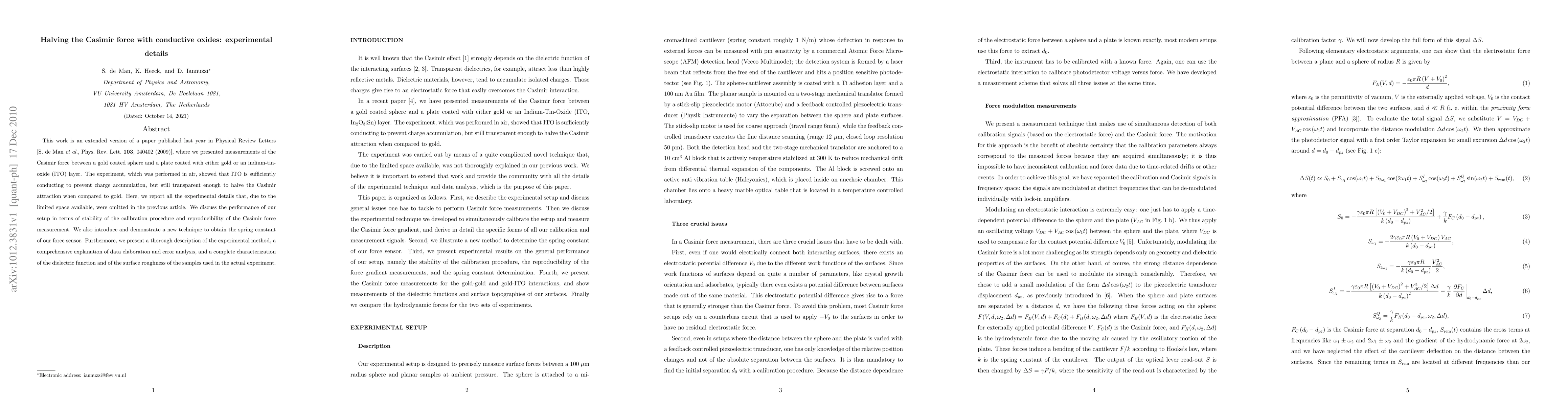 This work is an extended version of a paper published last year in Physical Review Letters [S. de Man et al., Phys. Rev. Lett. 103, 040402 (2009)], where we presented measurements of the Casimir force between a gold coated sphere and a plate coated with either gold or an indium-tin-oxide (ITO) layer. The experiment, which was performed in air, showed that ITO is sufficiently conducting to prevent charge accumulation, but still transparent enough to halve the Casimir attraction when compared to gold. Here, we report all the experimental details that, due to the limited space available, were omitted in the previous article. We discuss the performance of our setup in terms of stability of the calibration procedure and reproducibility of the Casimir force measurement. We also introduce and demonstrate a new technique to obtain the spring constant of our force sensor. Furthermore, we present a thorough description of the experimental method, a comprehensive explanation of data elaboration and error analysis, and a complete characterization of the dielectric function and of the surface roughness of the samples used in the actual experiment.