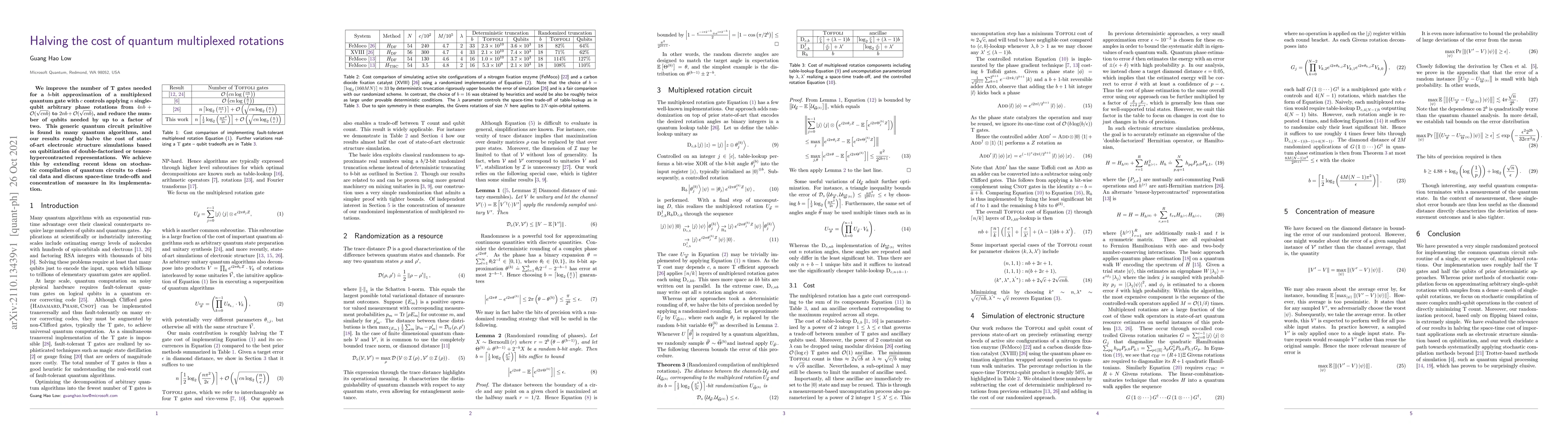 We improve the number of $T$ gates needed for a $b$-bit approximation of a multiplexed quantum gate with $c$ controls applying $n$ single-qubit arbitrary phase rotations from $4n b+\mathcal{O}(\sqrt{cn b})$ to $2n b+\mathcal{O}(\sqrt{cn b})$, and reduce the number of qubits needed by up to a factor of two. This generic quantum circuit primitive is found in many quantum algorithms, and our results roughly halve the cost of state-of-art electronic structure simulations based on qubitization of double-factorized or tensor-hypercontracted representations. We achieve this by extending recent ideas on stochastic compilation of quantum circuits to classical data and discuss space-time trade-offs and concentration of measure in its implementation.