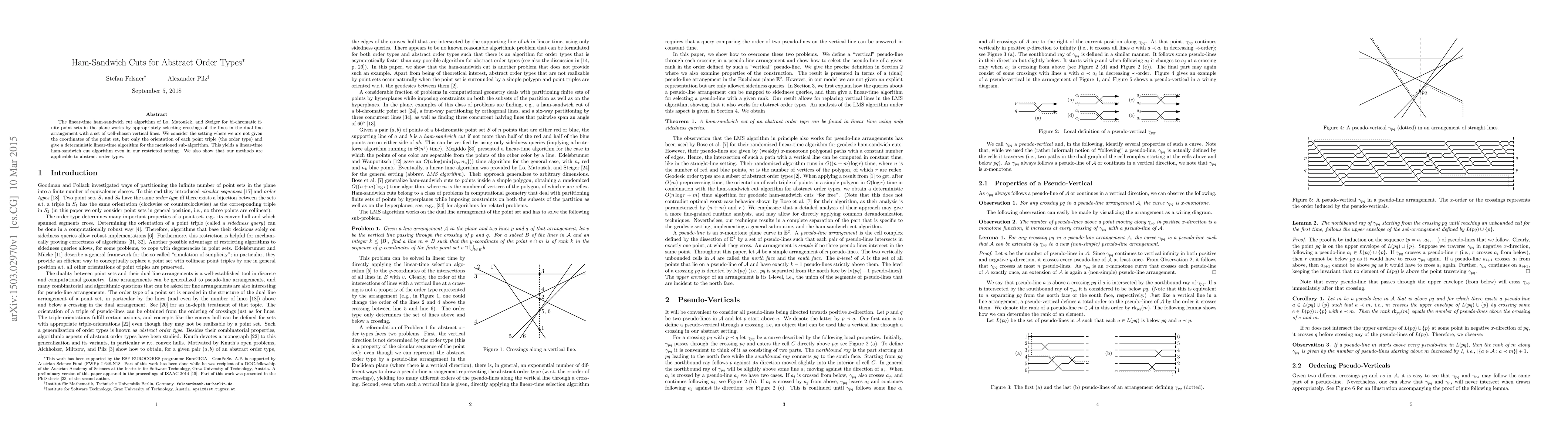 Researchers develop a linear-time algorithm for selecting optimal vertical lines to divide a set of points in the plane based on the order type of each triple, enabling efficient ham-sandwich cuts.