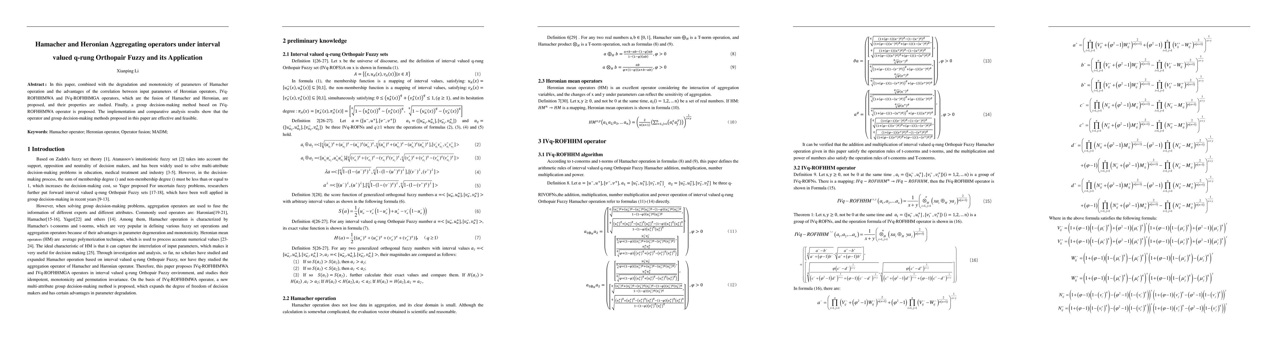 In this paper, combined with the degradation and monotonicity of parameters of Hamacher operation and the advantages of the correlation between input parameters of Heronian operators, IVq-ROFHHMWA and IVq-ROFHHMGA operators, which are the fusion of Hamacher and Heronian, are proposed, and their properties are studied. Finally, a group decision-making method based on IVq-ROFHHMWA operator is proposed. The implementation and comparative analysis results show that the operator and group decision-making methods proposed in this paper are effective and feasible.