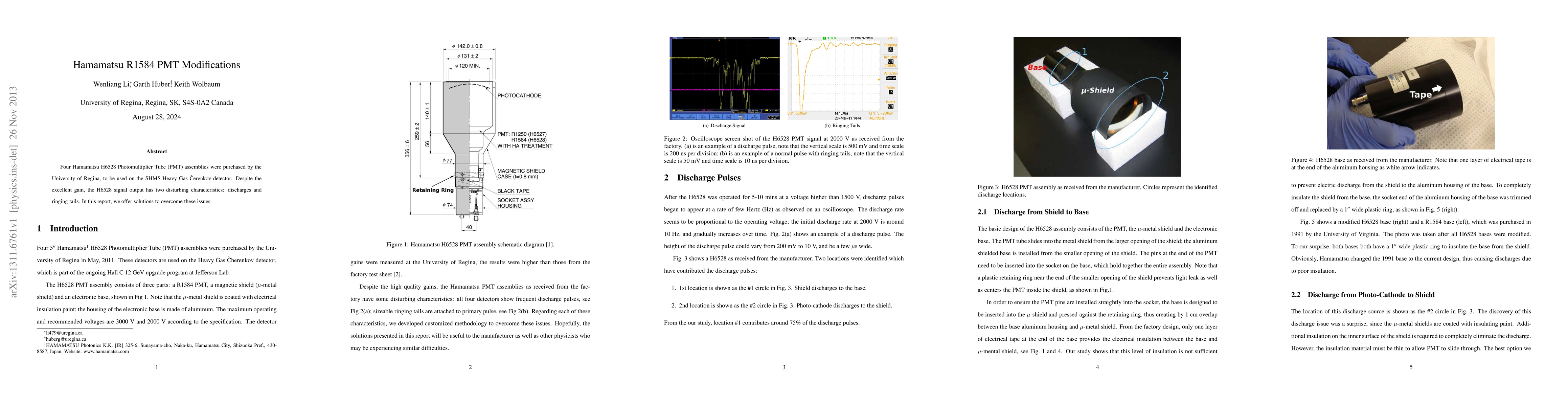Four Hamamatsu H6528 Photomultiplier Tube (PMT) assemblies were purchased by the University of Regina, to be used on the SHMS Heavy Gas Cherenkov detector. Despite the excellent gain, the H6528 signal output has two disturbing characteristics: discharges and ringing tails. In this report, we offer solutions to overcome these issues.