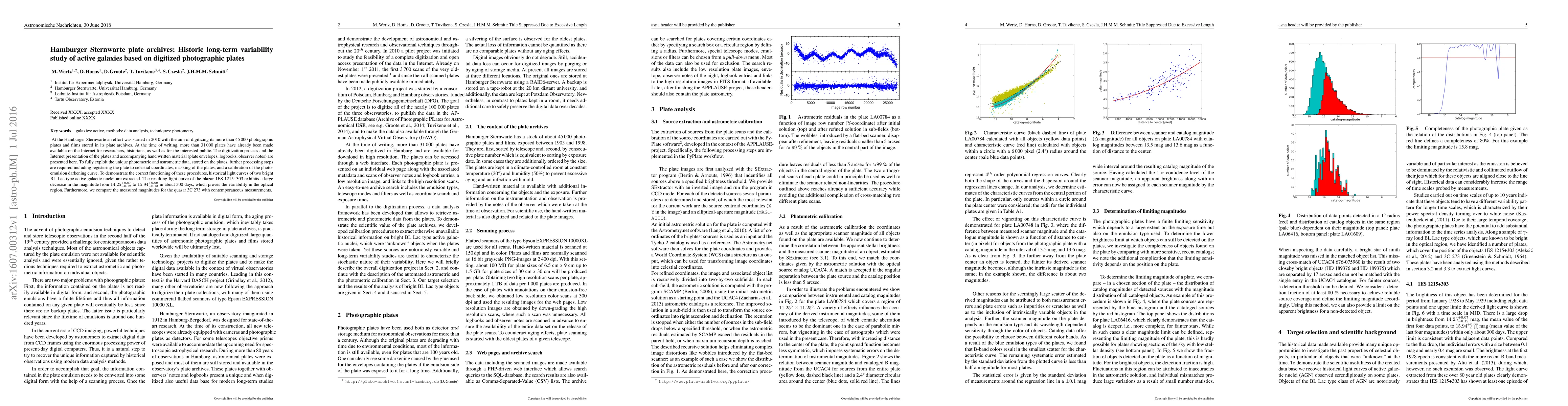 This paper discusses the digitization of over 45,000 photographic plates from the Hamburger Sternwarte, highlighting the long-term variability of active galactic nuclei. It demonstrates the process and presents light curves of two BL Lac objects, showing significant optical variability.
