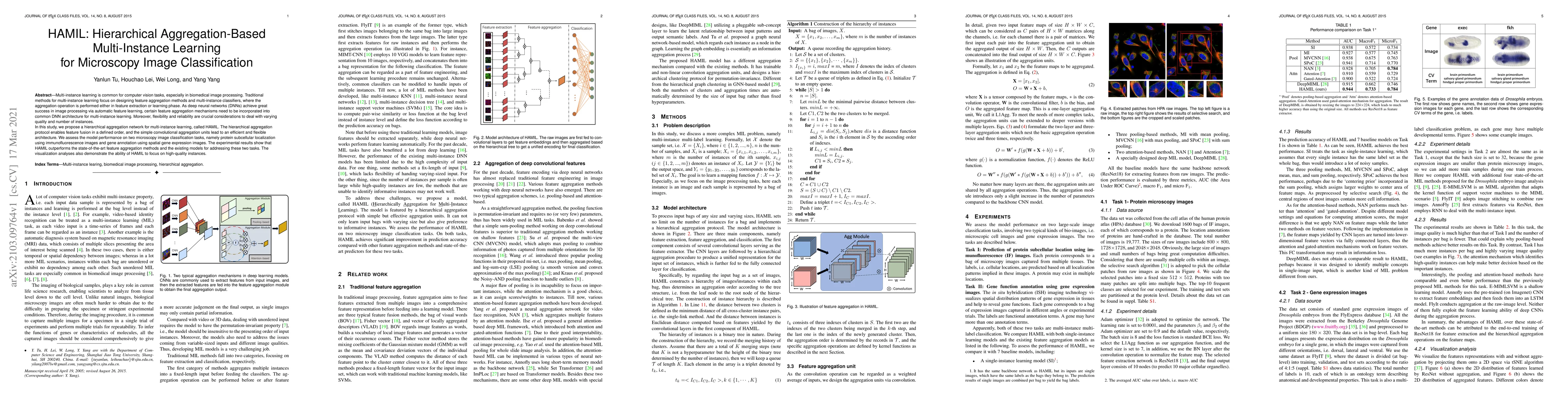 The paper proposes HAMIL, a hierarchical aggregation-based multi-instance learning network for microscopy image classification, which outperforms existing methods by efficiently fusing features in a defined order and focusing on high-quality instances. Experimental results on protein localization and gene annotation tasks demonstrate its superior performance.