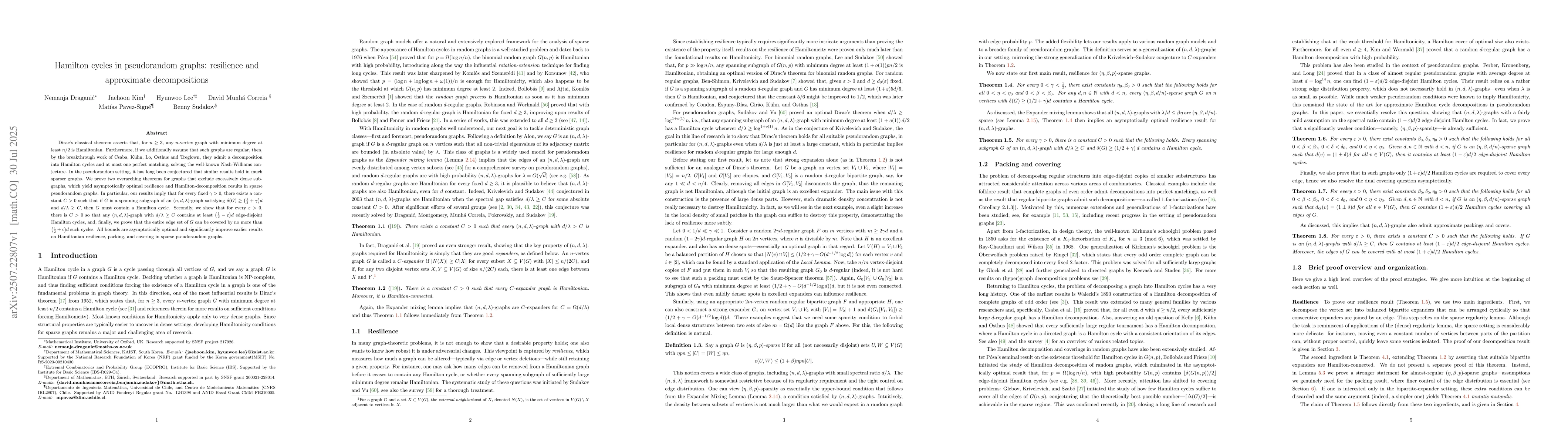 The paper introduces novel techniques for analyzing the resilience and approximate decomposition of Hamilton cycles in pseudorandom graphs, extending Dirac's classical theorem to sparse settings.