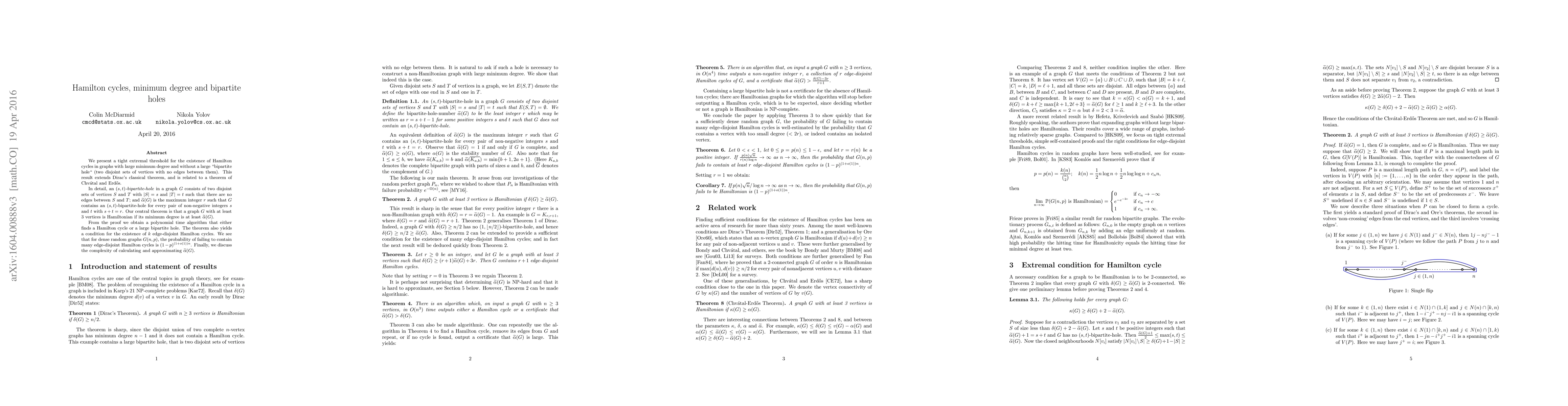 This paper establishes a tight extremal threshold for Hamilton cycles in graphs with high minimum degree and no large bipartite holes. It extends Dirac's theorem and provides a polynomial-time algorithm to find either a Hamilton cycle or a large bipartite hole, along with conditions for multiple edge-disjoint Hamilton cycles in dense random graphs.