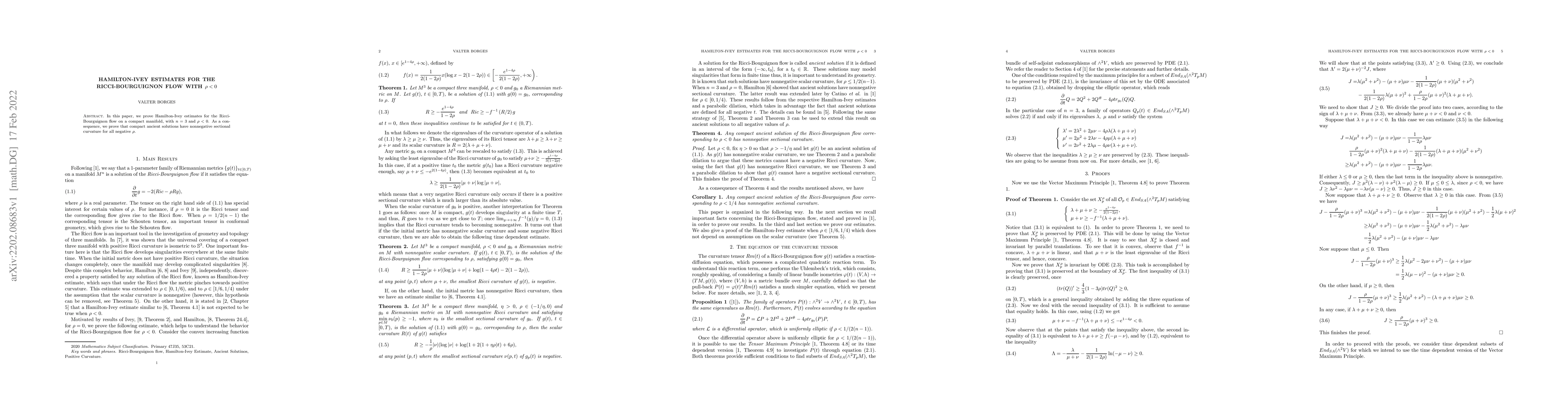 In this paper, we prove Hamilton-Ivey estimates for the Ricci-Bourguignon flow on a compact manifold, with $n=3$ and $\rho<0$. As a consequence, we prove that compact ancient solutions have nonnegative sectional curvature for all negative $\rho$.