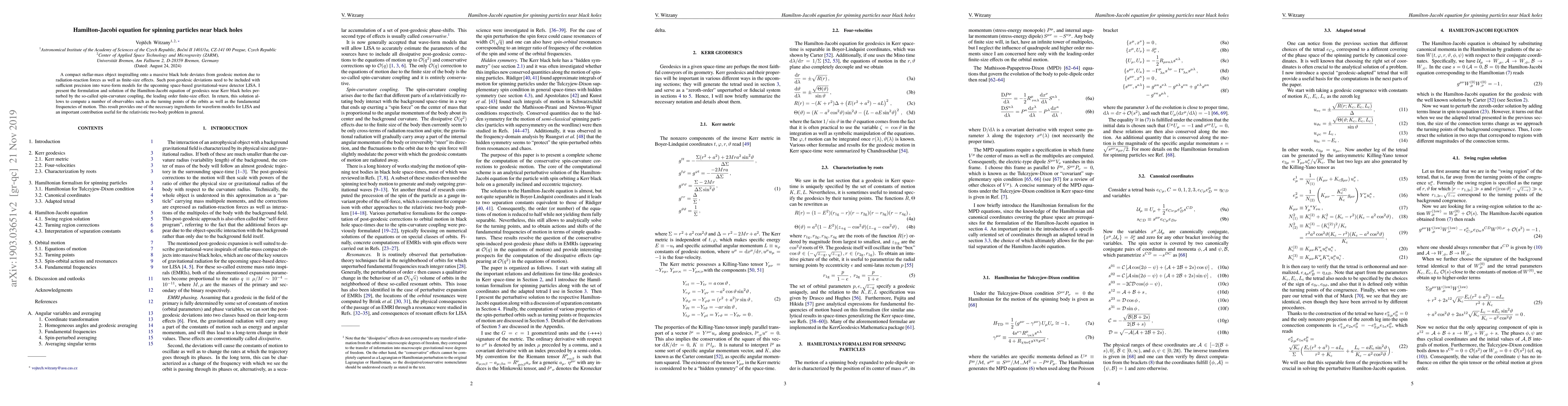 A compact stellar-mass object inspiralling onto a massive black hole deviates from geodesic motion due to radiation-reaction forces as well as finite-size effects. Such post-geodesic deviations need to be included with sufficient precision into wave-form models for the upcoming space-based gravitational-wave detector LISA. I present the formulation and solution of the Hamilton-Jacobi equation of geodesics near Kerr black holes perturbed by the so-called spin-curvature coupling, the leading order finite-size effect. In return, this solution allows to compute a number of observables such as the turning points of the orbits as well as the fundamental frequencies of motion. This result provides one of the necessary ingredients for waveform models for LISA and an important contribution useful for the relativistic two-body problem in general.