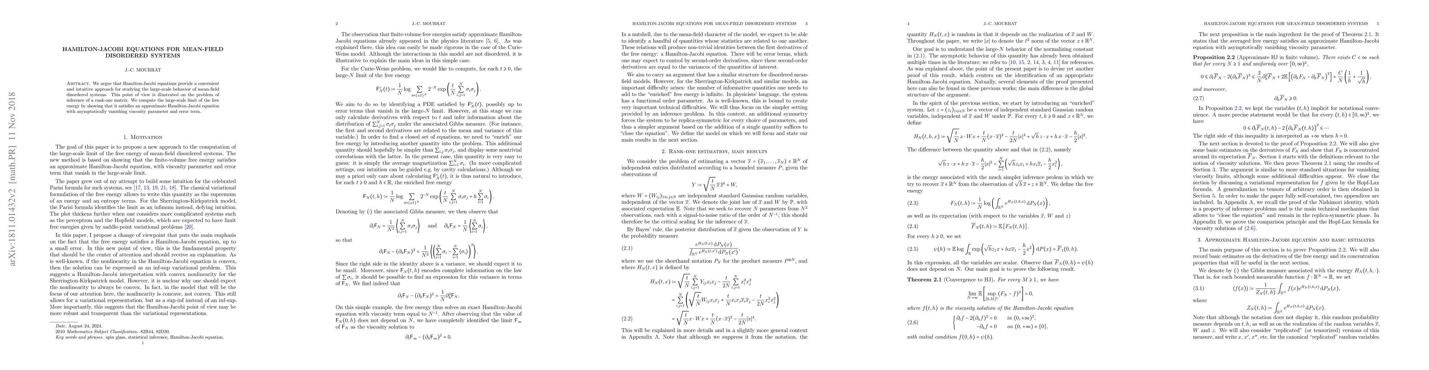 This paper demonstrates that Hamilton-Jacobi equations offer an intuitive framework for analyzing the large-scale behavior of mean-field disordered systems, exemplified through the inference of a rank-one matrix, where the free energy is shown to satisfy an approximate Hamilton-Jacobi equation with negligible viscosity and error.