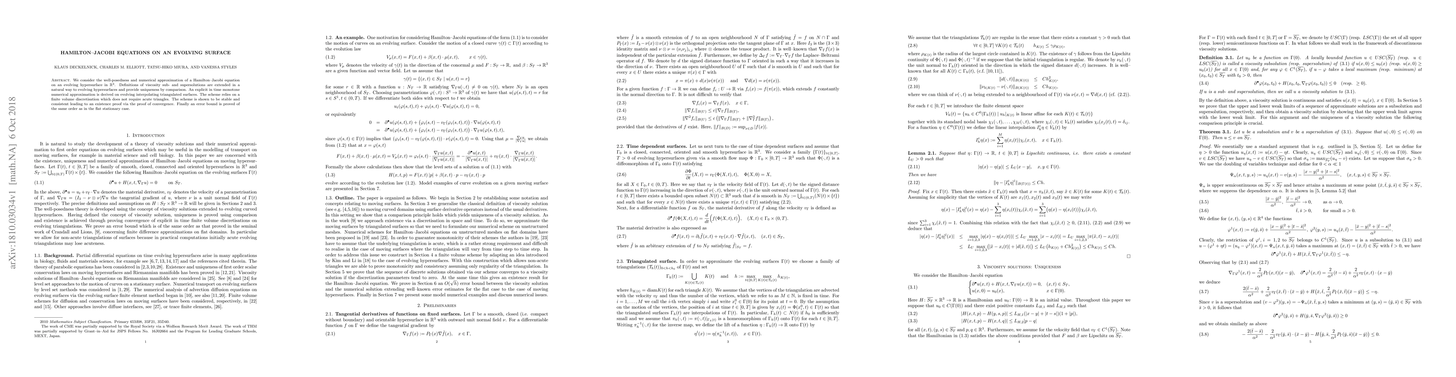 A finite element method for solving Hamilton-Jacobi equations on evolving surfaces is presented.