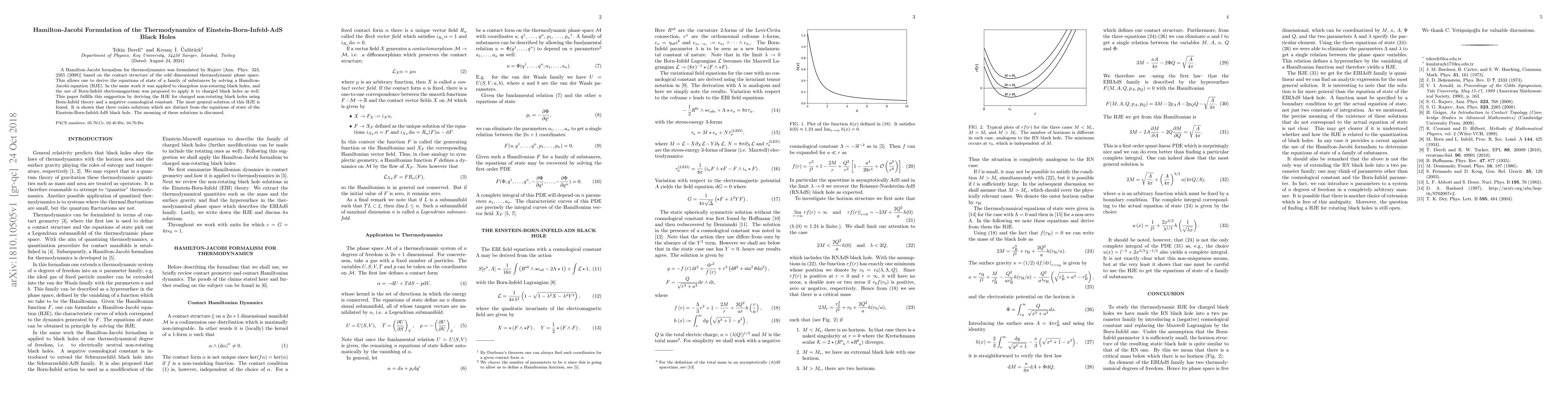 A Hamilton-Jacobi formalism for thermodynamics was formulated by Rajeev [Ann. Phys. 323, 2265 (2008)] based on the contact structure of the odd dimensional thermodynamic phase space. This allows one to derive the equations of state of a family of substances by solving a Hamilton-Jacobi equation (HJE). In the same work it was applied to chargeless non-rotating black holes, and the use of Born-Infeld electromagnetism was proposed to apply it to charged black holes as well. This paper fulfills this suggestion by deriving the HJE for charged non-rotating black holes using Born-Infeld theory and a negative cosmological constant. The most general solution of this HJE is found. It is shown that there exists solutions which are distinct from the equations of state of the Einstein-Born-Infeld-AdS black hole. The meaning of these solutions is discussed.