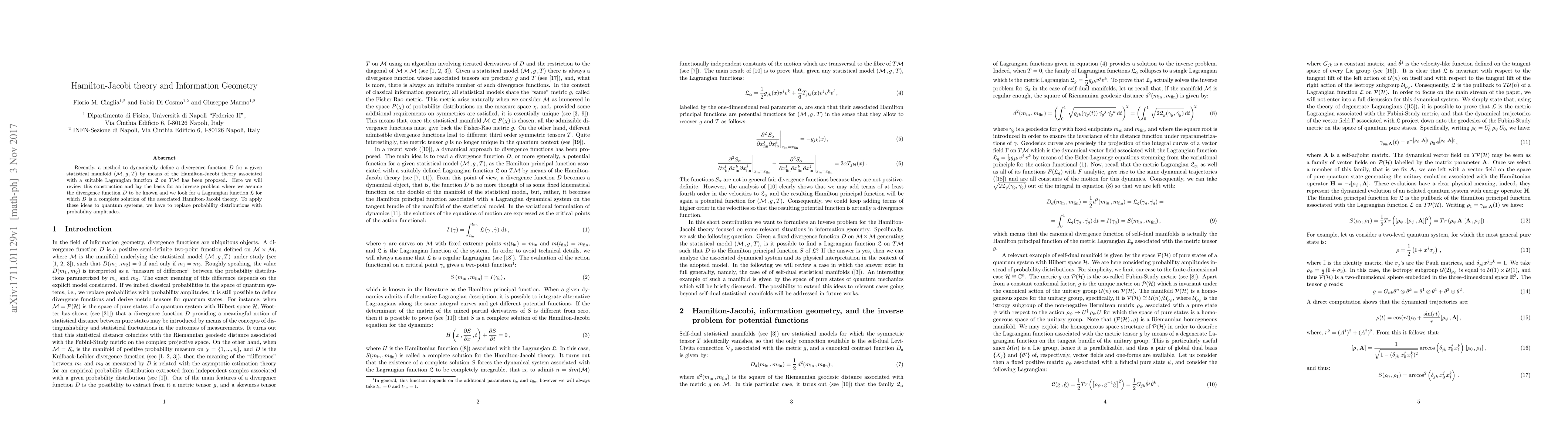 Recently, a method to dynamically define a divergence function $D$ for a given statistical manifold $(\mathcal{M}\,,g\,,T)$ by means of the Hamilton-Jacobi theory associated with a suitable Lagrangian function $\mathfrak{L}$ on $T\mathcal{M}$ has been proposed. Here we will review this construction and lay the basis for an inverse problem where we assume the divergence function $D$ to be known and we look for a Lagrangian function $\mathfrak{L}$ for which $D$ is a complete solution of the associated Hamilton-Jacobi theory. To apply these ideas to quantum systems, we have to replace probability distributions with probability amplitudes.