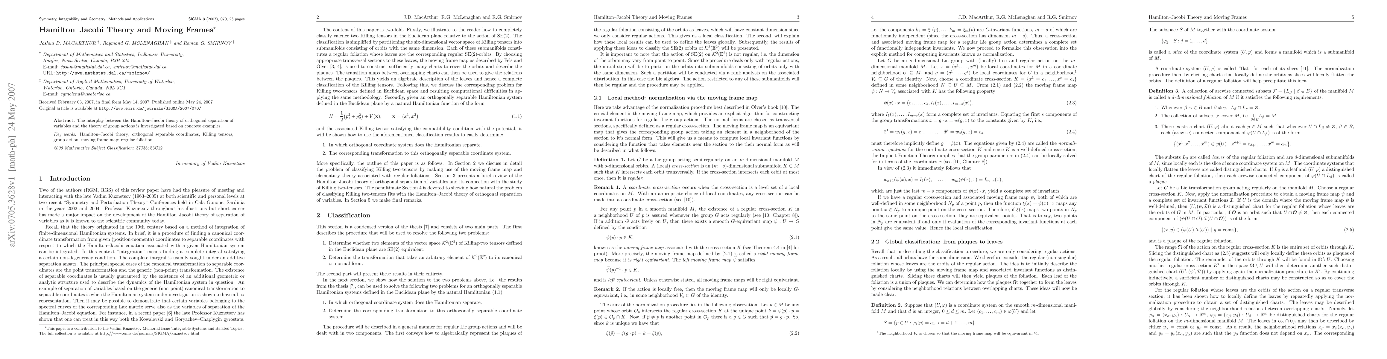 This research explores the connection between Hamilton-Jacobi theory and group actions, revealing new insights into orthogonal separation of variables through concrete examples.