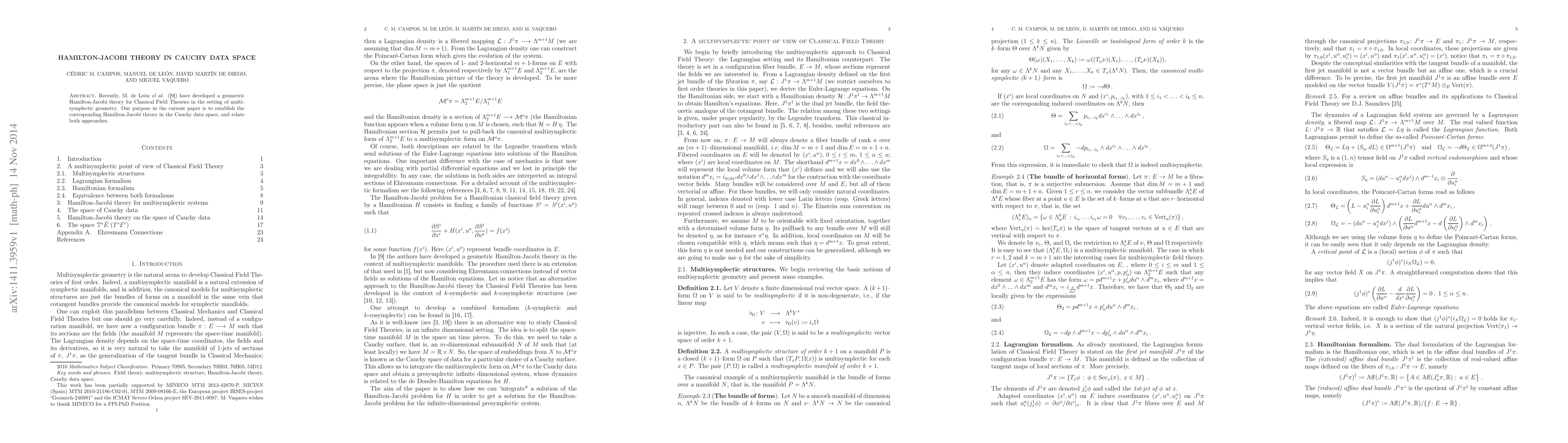 Summary: This paper develops a Hamilton-Jacobi theory for Classical Field Theories within the Cauchy data space, building on previous work in multisymplectic geometry, and establishes a connection between the two theoretical frameworks.