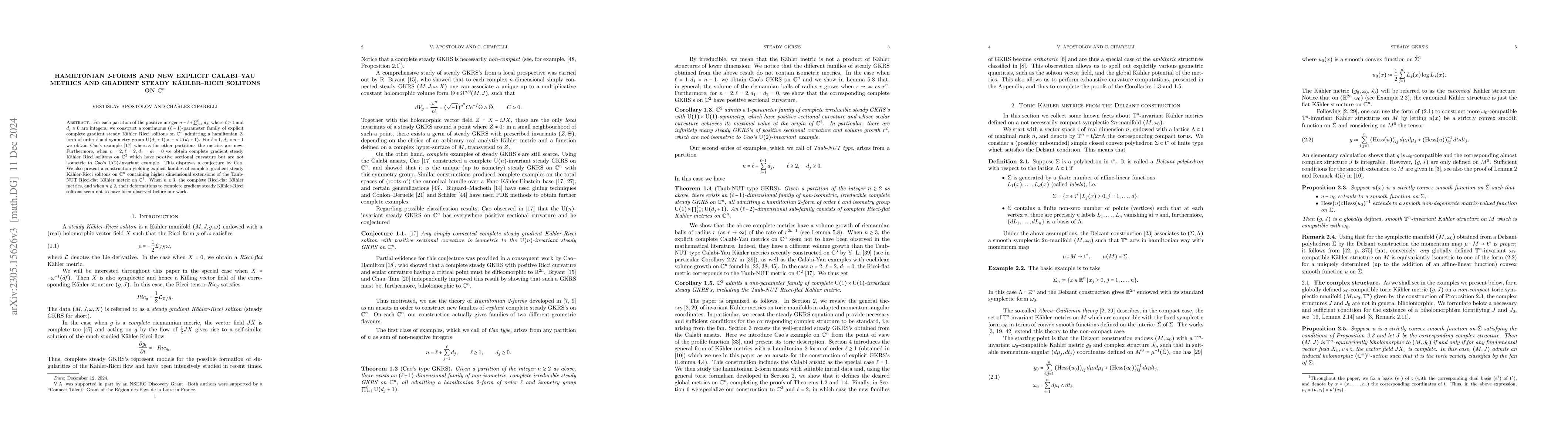 For each partition of the positive integer $n= \ell +\sum_{j=1}^\ell d_j$, where $\ell\ge 1$ and $d_j \ge 0$ are integers, we construct a continuous $(\ell-1)$-parameter family of explicit complete gradient steady K\"ahler--Ricci solitons on $\mathbb{C}^n$ admitting a hamiltonian $2$-form of order $\ell$ and symmetry group ${\rm U}(d_1+ 1) \times \cdots \times {\rm U}(d_{\ell} + 1)$. For $\ell=1, \, d_1=n-1, \, d_2=\cdots = d_{\ell}=0$ we obtain Cao's example [17] whereas for other partitions the metrics are new. Furthermore, when $n=2, \, \ell=2, \, d_1=d_2=0$ we obtain complete gradient steady K\"ahler--Ricci solitons on $\mathbb{C}^2$ which have positive sectional curvature but are not isometric to Cao's ${\rm U}(2)$-invariant example. This disproves a conjecture by Cao. We also present a construction yielding explicit families of complete gradient steady K\"ahler-Ricci solitons on $\mathbb{C}^n$ containing higher dimensional extensions of the Taub-NUT Ricci-flat K\"ahler metric on $\mathbb{C}^2$. When $n\ge 3$, the complete Ricci-flat K\"ahler metrics, and when $n\ge 2$, their deformations to complete gradient steady K\"ahler Ricci solitons seem not to have been observed before our work.