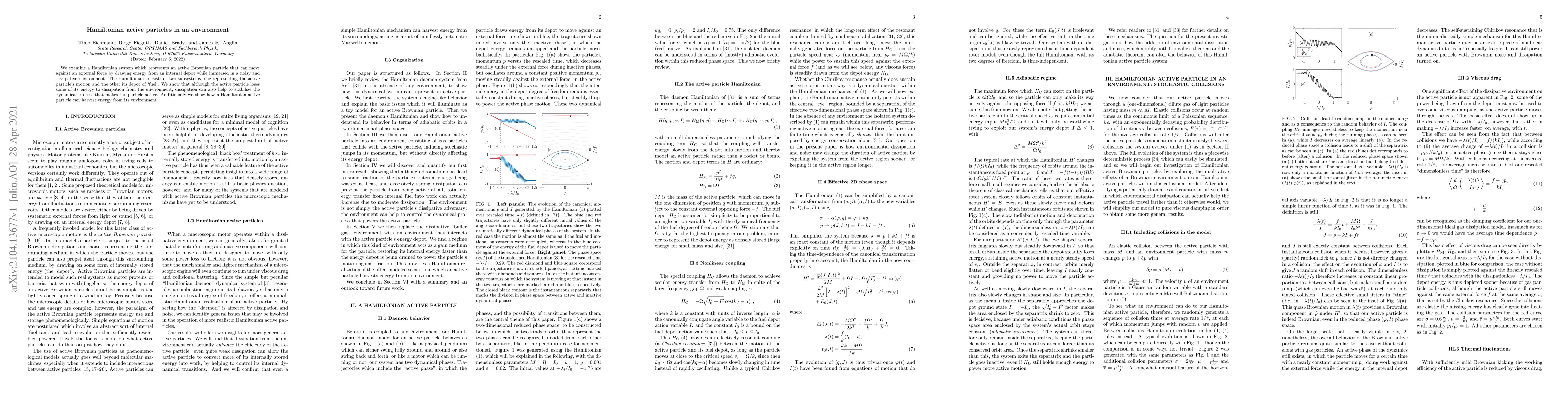The paper introduces a Hamiltonian formulation for active particles that incorporates both motion and energy depot dynamics, providing a robust framework for studying active matter in dissipative environments.
