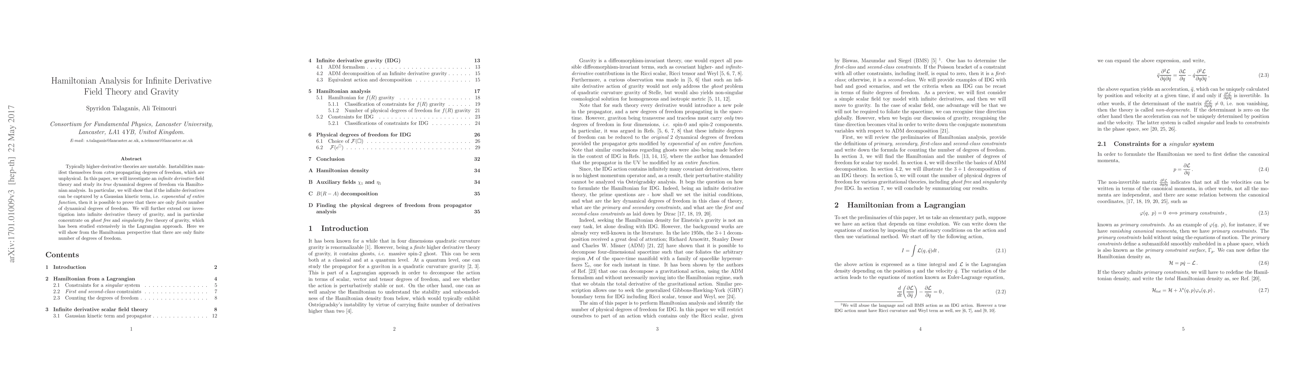 This paper investigates infinite derivative field theories and gravity, demonstrating via Hamiltonian analysis that despite the presence of infinite derivatives, only a finite number of dynamical degrees of freedom exist when these derivatives are modeled by a Gaussian kinetic term. It also extends these findings to an infinite derivative theory of gravity, proving it to be ghost-free and singularity-free.