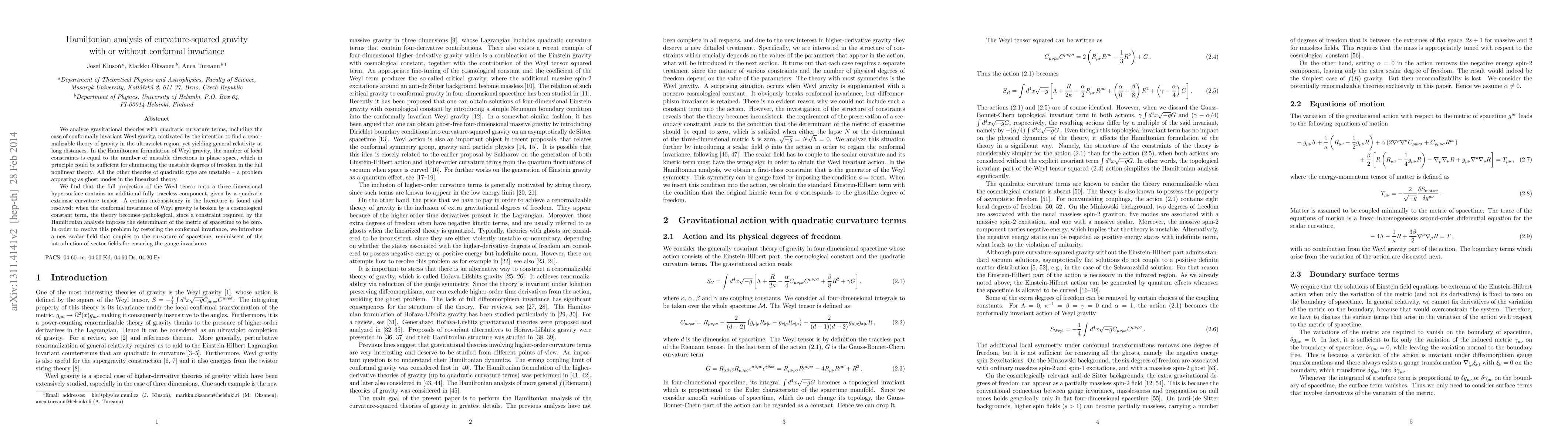 We analyze gravitational theories with quadratic curvature terms, including the case of conformally invariant Weyl gravity, motivated by the intention to find a renormalizable theory of gravity in the ultraviolet region, yet yielding general relativity at long distances. In the Hamiltonian formulation of Weyl gravity, the number of local constraints is equal to the number of unstable directions in phase space, which in principle could be sufficient for eliminating the unstable degrees of freedom in the full nonlinear theory. All the other theories of quadratic type are unstable -- a problem appearing as ghost modes in the linearized theory. We find that the full projection of the Weyl tensor onto a three-dimensional hypersurface contains an additional fully traceless component, given by a quadratic extrinsic curvature tensor. A certain inconsistency in the literature is found and resolved: when the conformal invariance of Weyl gravity is broken by a cosmological constant term, the theory becomes pathological, since a constraint required by the Hamiltonian analysis imposes the determinant of the metric of spacetime to be zero. In order to resolve this problem by restoring the conformal invariance, we introduce a new scalar field that couples to the curvature of spacetime, reminiscent of the introduction of vector fields for ensuring the gauge invariance.