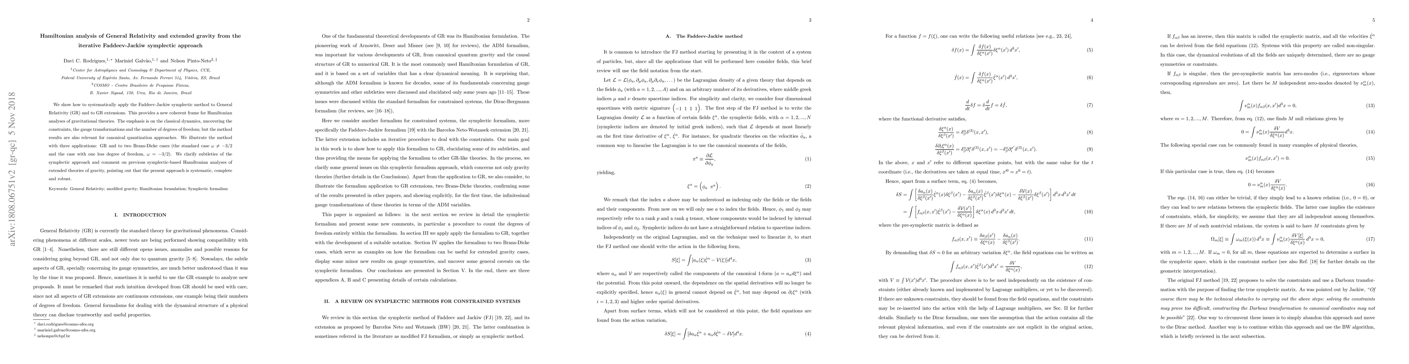 This paper systematically applies the Faddeev-Jackiw symplectic method to General Relativity and its extensions, offering a new framework for Hamiltonian analyses. It highlights classical dynamics, constraints, gauge transformations, and degrees of freedom, while also benefiting canonical quantization. The method is demonstrated through applications to General Relativity and two Brans-Dicke scenarios, underscoring its systematic, complete, and robust nature.