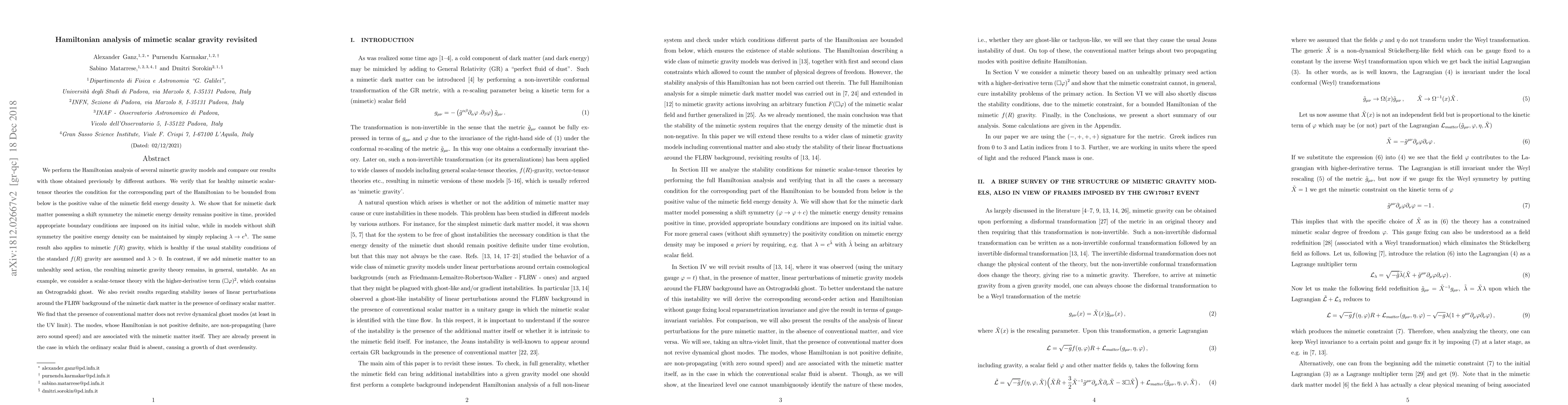 This paper revisits Hamiltonian analysis of mimetic scalar gravity models, confirming that a positive mimetic field energy density $\lambda$ ensures bounded Hamiltonians. It finds that mimetic dark matter with shift symmetry maintains positive energy density under appropriate conditions, while models without shift symmetry can maintain it by replacing $\lambda\to e^{\lambda}$. The study also highlights that adding mimetic matter to unstable seed actions generally retains instability.