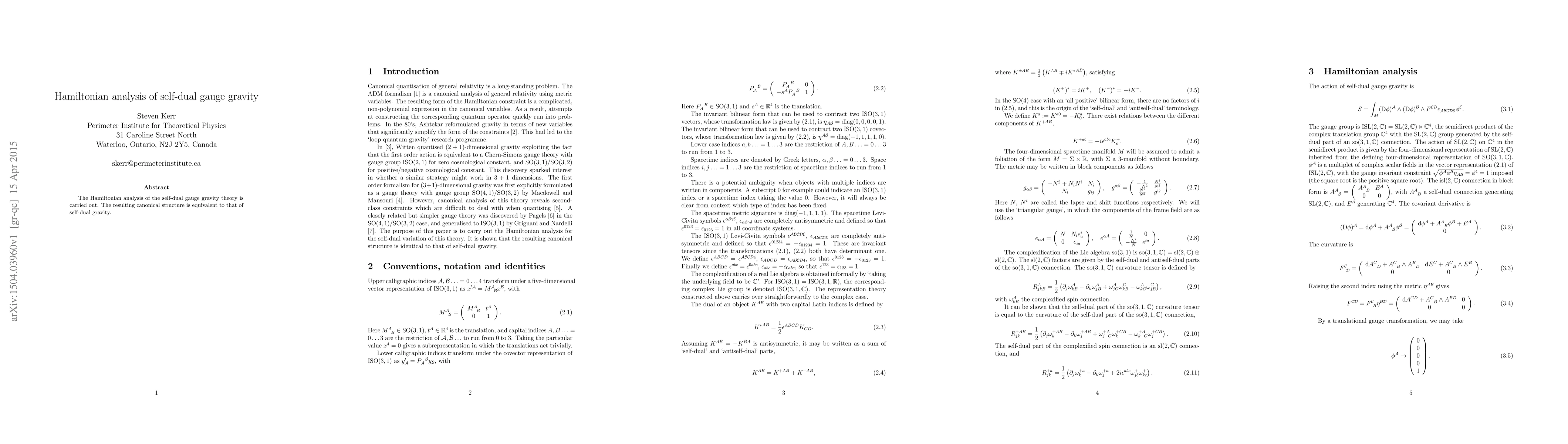 Summary: This paper conducts a Hamiltonian analysis of self-dual gauge gravity, revealing a canonical structure equivalent to that of self-dual gravity, providing deeper insights into the theory's dynamics.