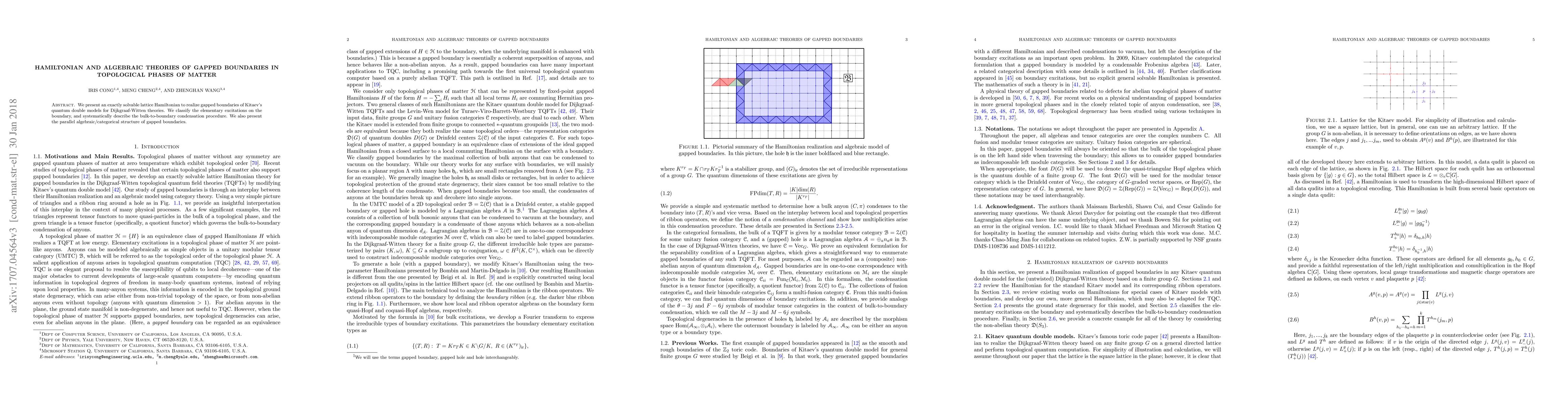 This research introduces an exactly solvable Hamiltonian for realizing gapped boundaries in topological phases of matter, classifying boundary excitations and detailing the bulk-to-boundary condensation process, alongside presenting an equivalent algebraic structure for the boundaries.